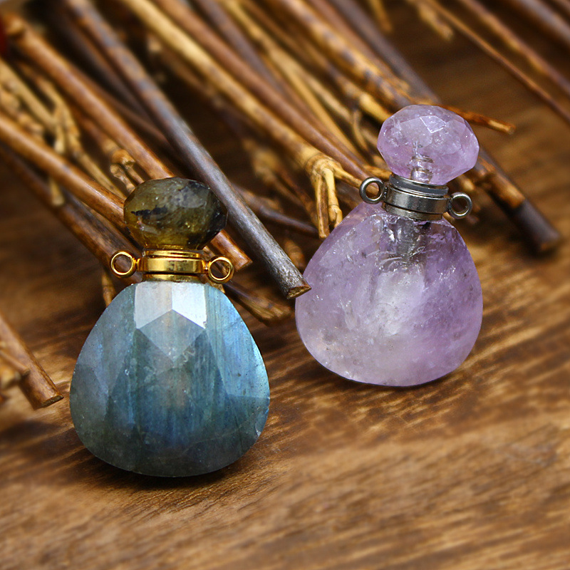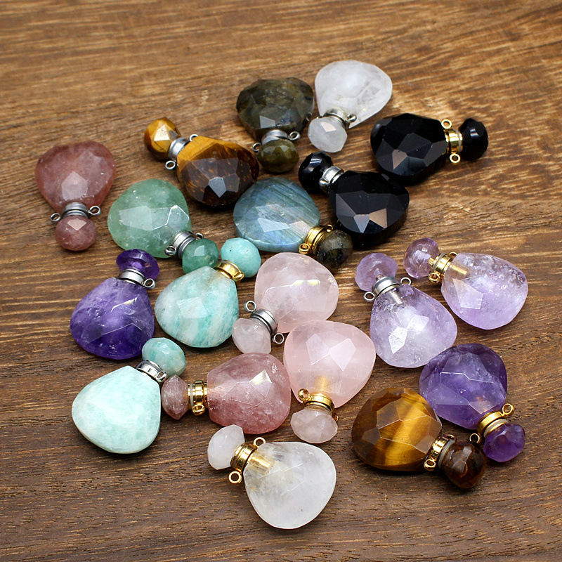 Pedra natural Pingente de garrafa de perfume, with cobre, DIY & materiais diferentes para a escolha, Mais cores pare escolha, 25x17x8mm, vendido por PC