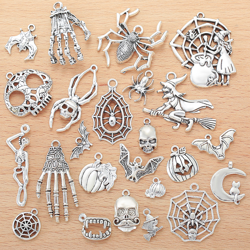 Pingente de moda do Dia das Bruxas, liga de zinco, banho de cor prata antiga, Design de Halloween & DIY & Vario tipos a sua escolha, vendido por PC