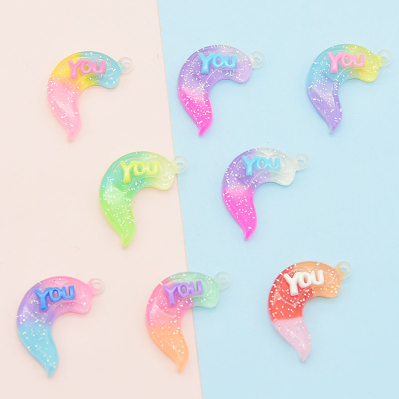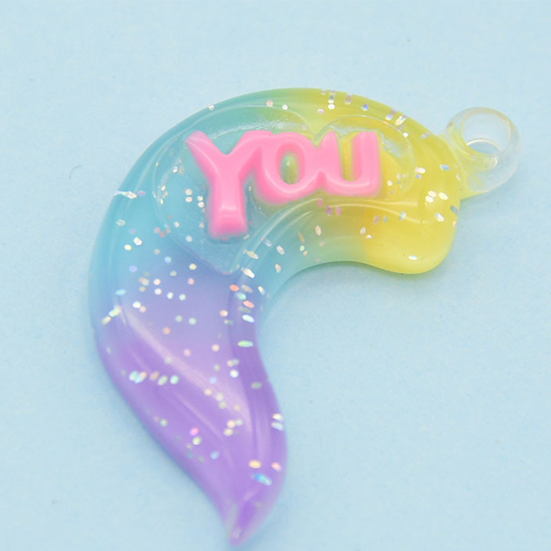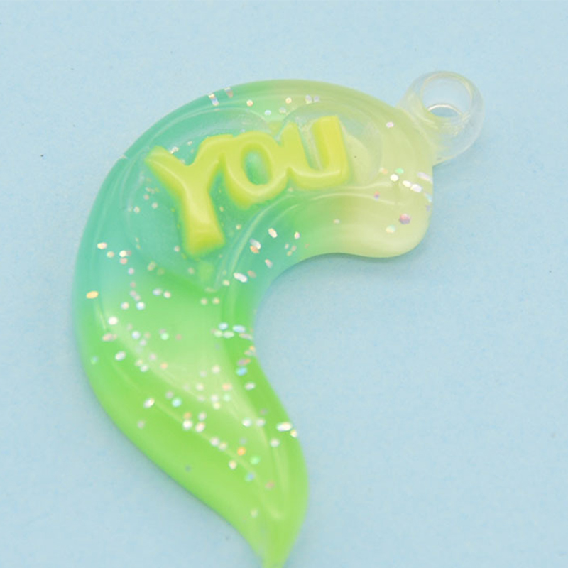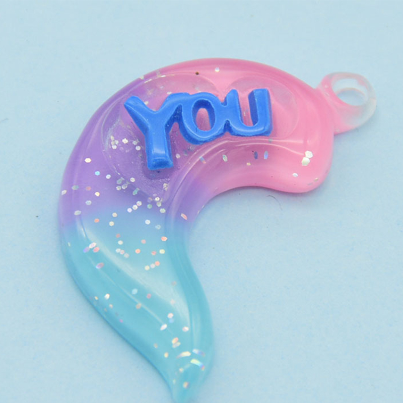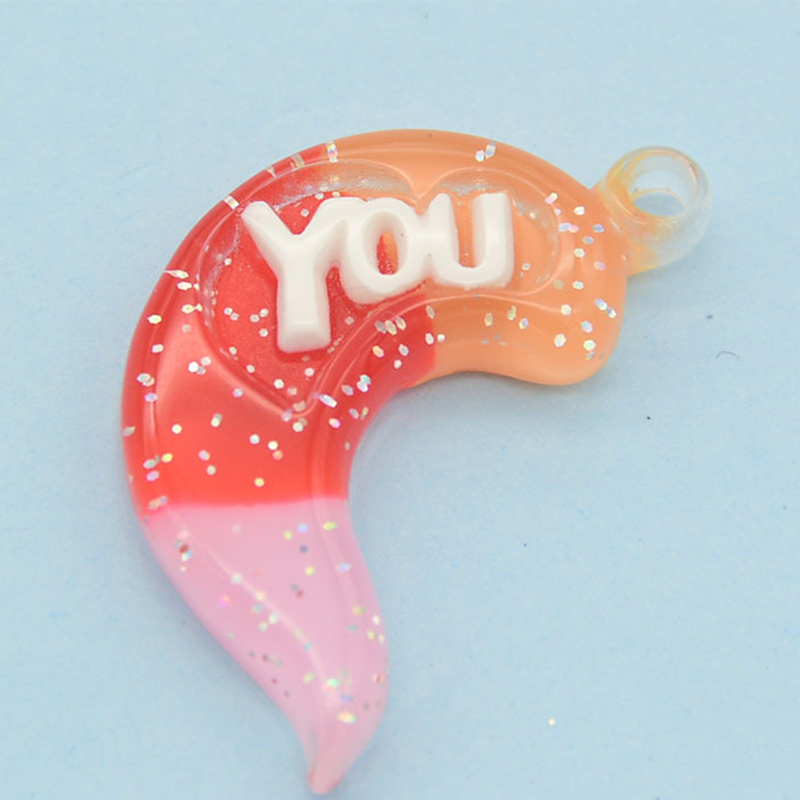 Pingente de resina, Lua, gradiente de cor & DIY & com padrão de carta, Mais cores pare escolha, 39x21mm, vendido por PC