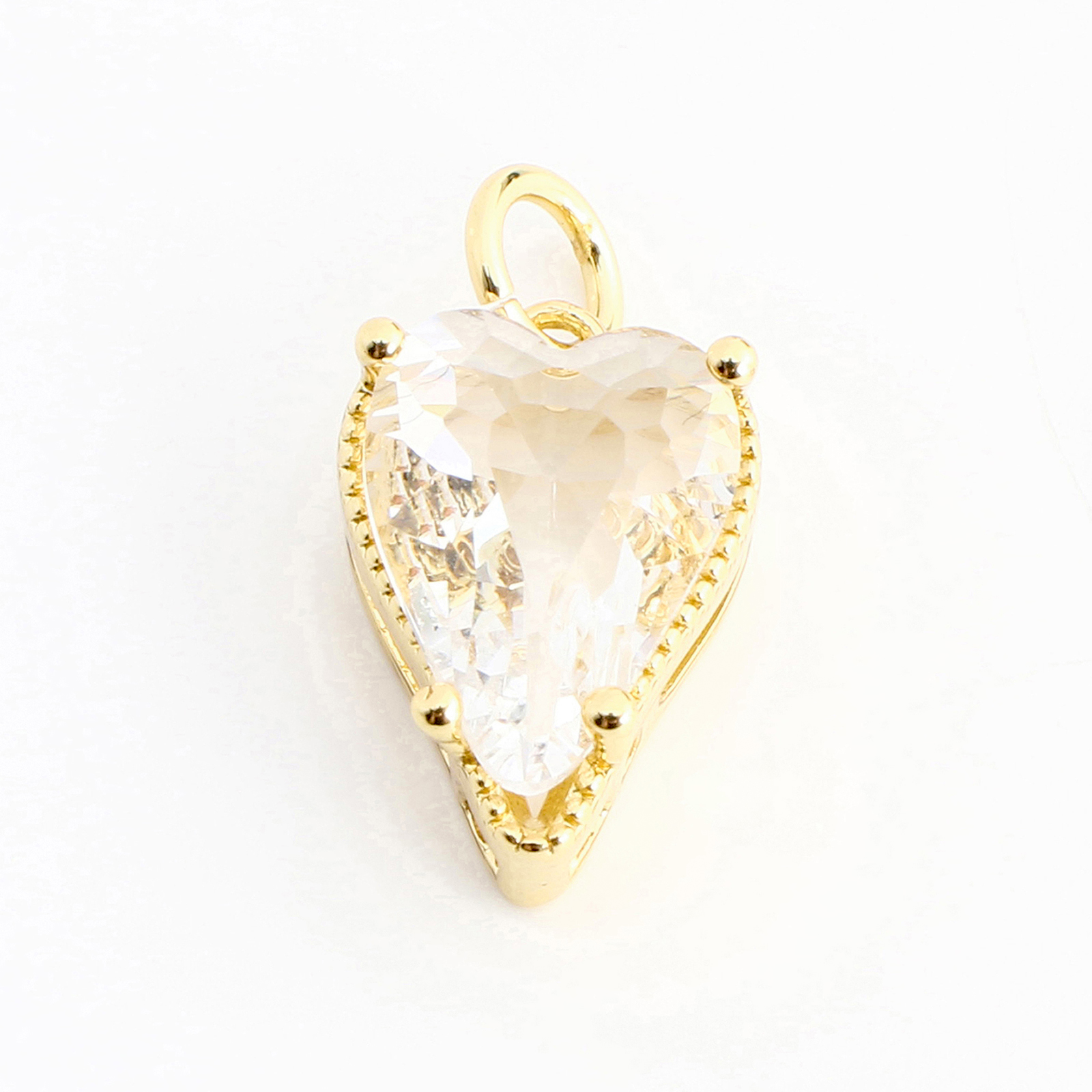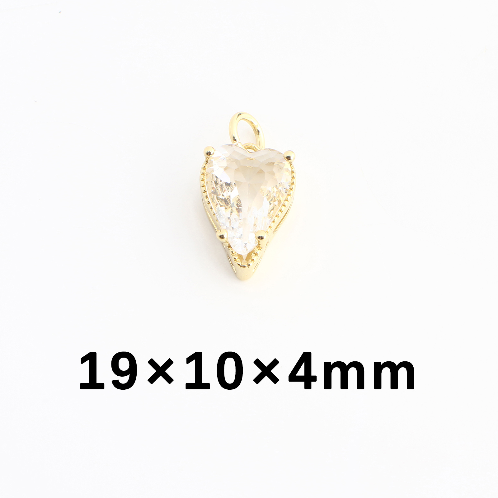 Pingentes de bronze do Zirconia cúbico (CZ), cobre, Coração, DIY & micro pavimento em zircônia cúbica, dourado, 19x10x4mm, vendido por PC