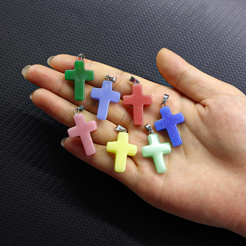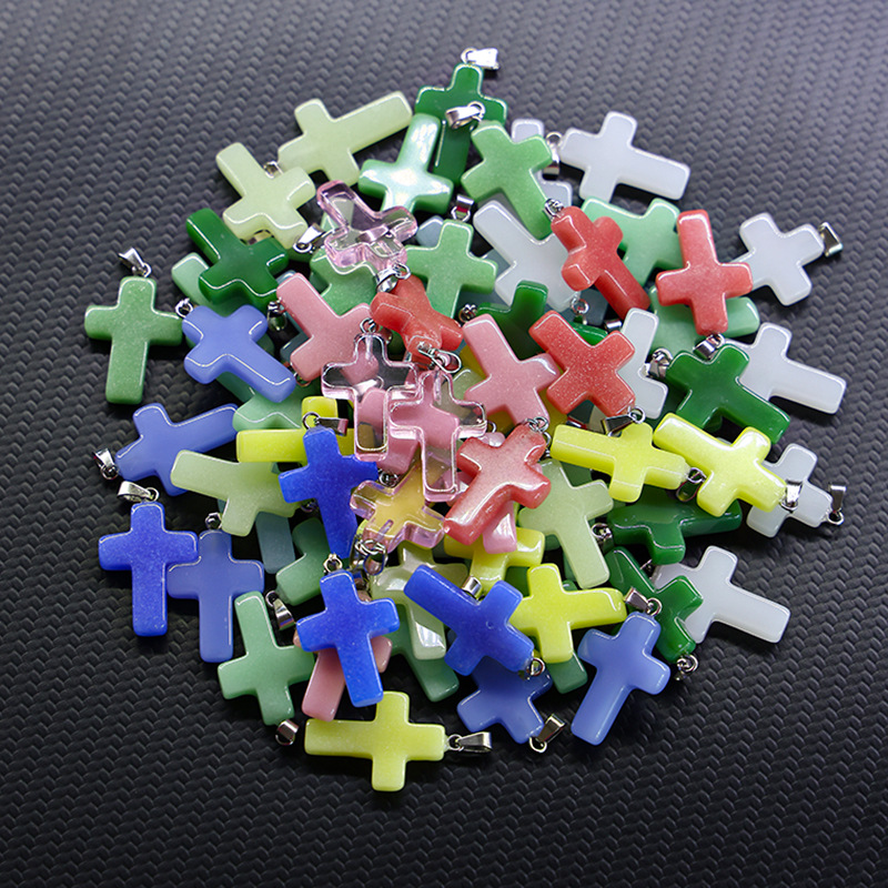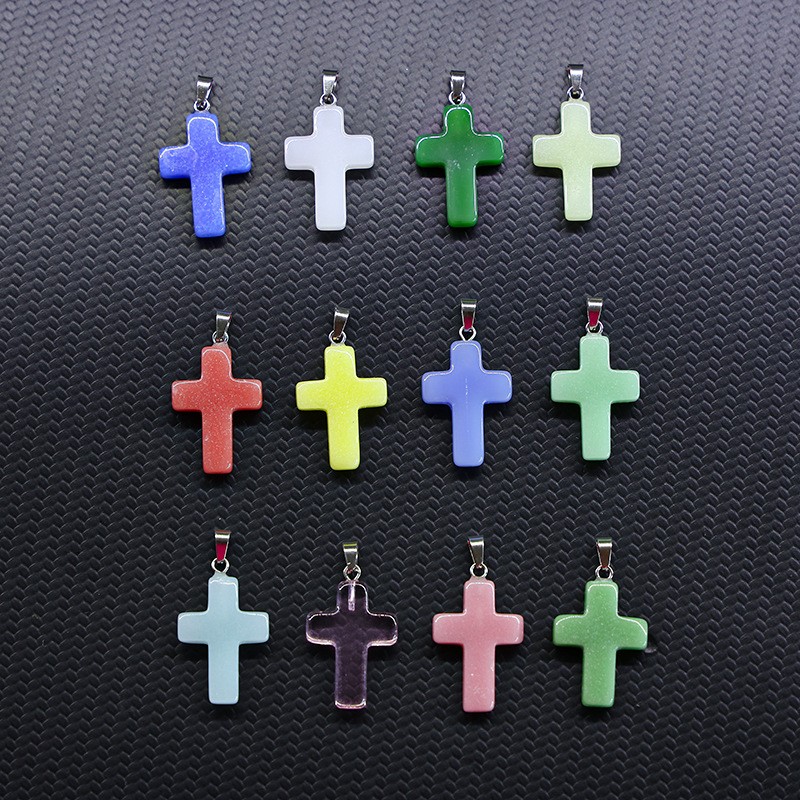 Pingentes em jóias, Night-Light+Stone Night-Light + Stone, with ferro & Aço inoxidável 304, Cruz, DIY, Mais cores pare escolha, 15x32x2mm, vendido por PC