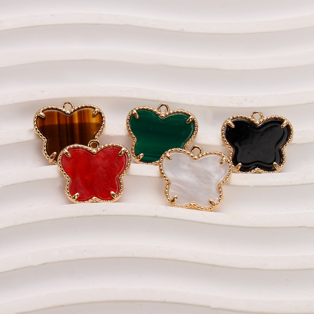 Pingentes em jóias, cobre, with misto de pedras semi-preciosas, Borboleta, banhado, DIY, dourado, 18.70x2.90x16.84mm, 30PCs/Bag, vendido por Bag