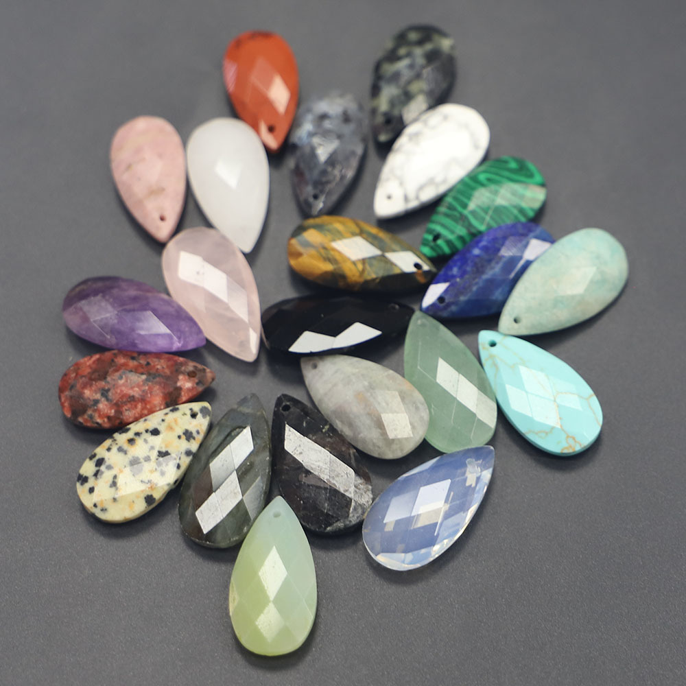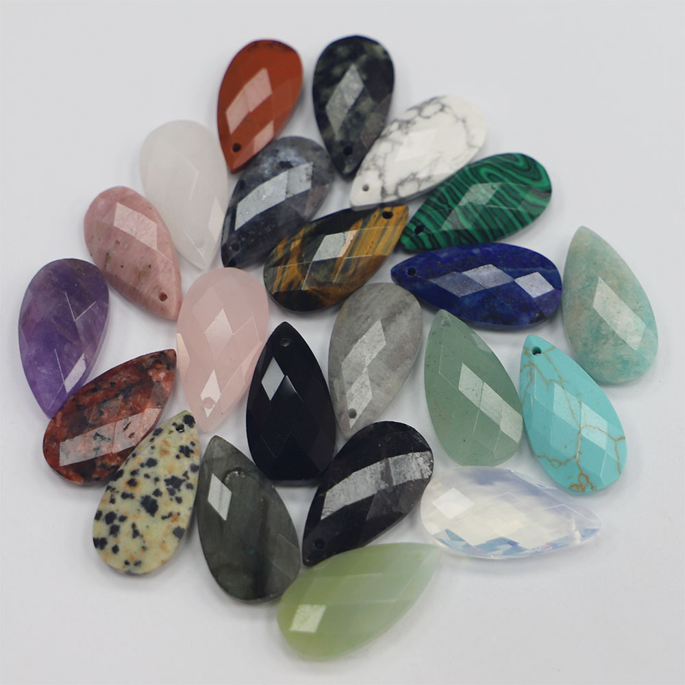 Pingentes em jóias, misto de pedras semi-preciosas, Lágrima, polido, DIY & materiais diferentes para a escolha & facetada, 25x13x6mm, Buraco:Aprox 1.5mm, vendido por PC