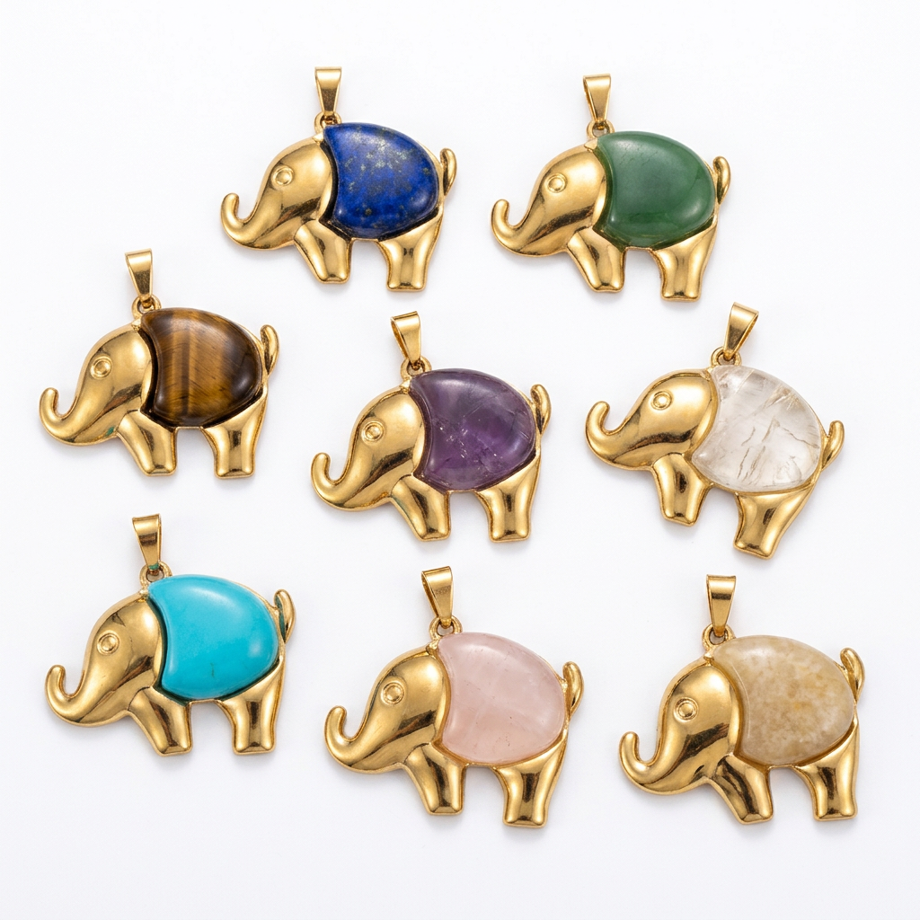 Pingentes em jóias, misto de pedras semi-preciosas, with Aço inoxidável 304, Elefante, DIY & materiais diferentes para a escolha, 25x24.50mm, vendido por PC