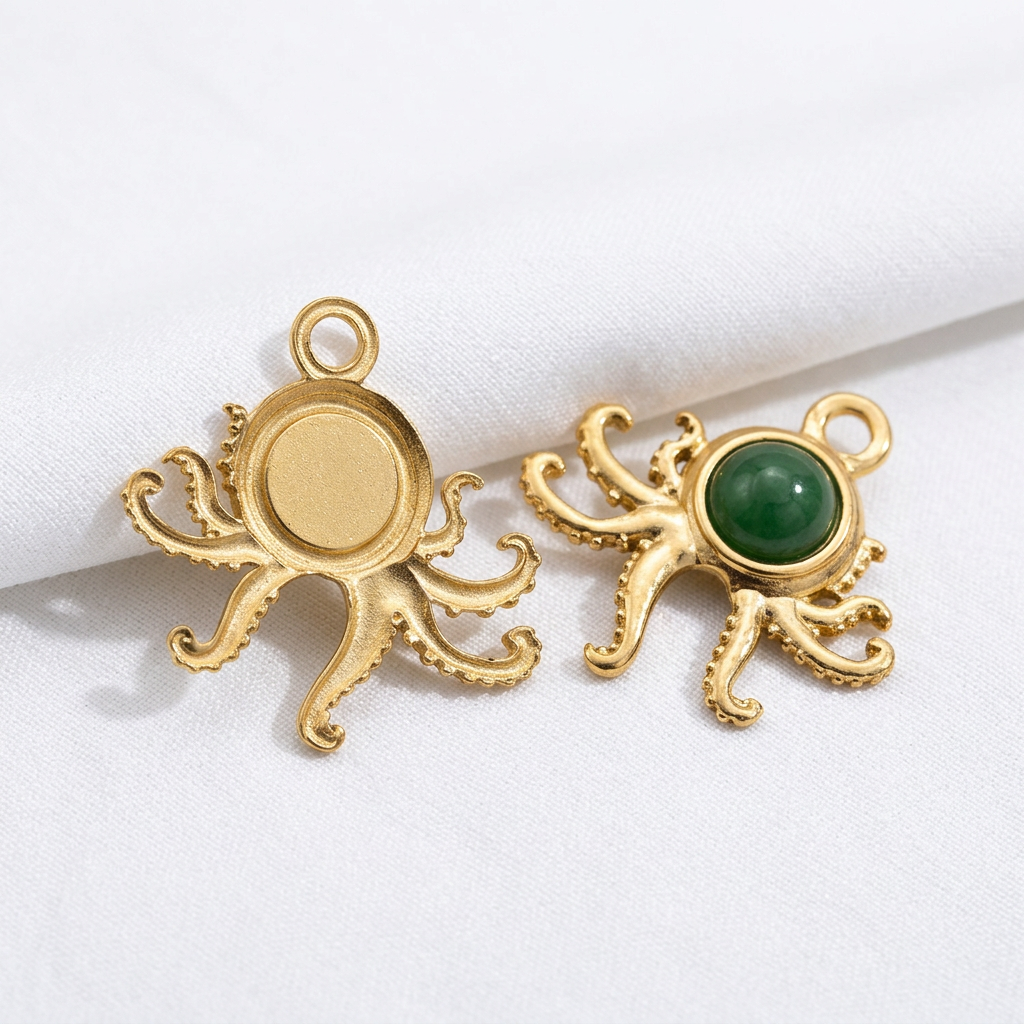 Pingentes em jóias, misto de pedras semi-preciosas, with Aço inoxidável 304, Polvo, DIY & materiais diferentes para a escolha, 23.20x26mm, vendido por PC