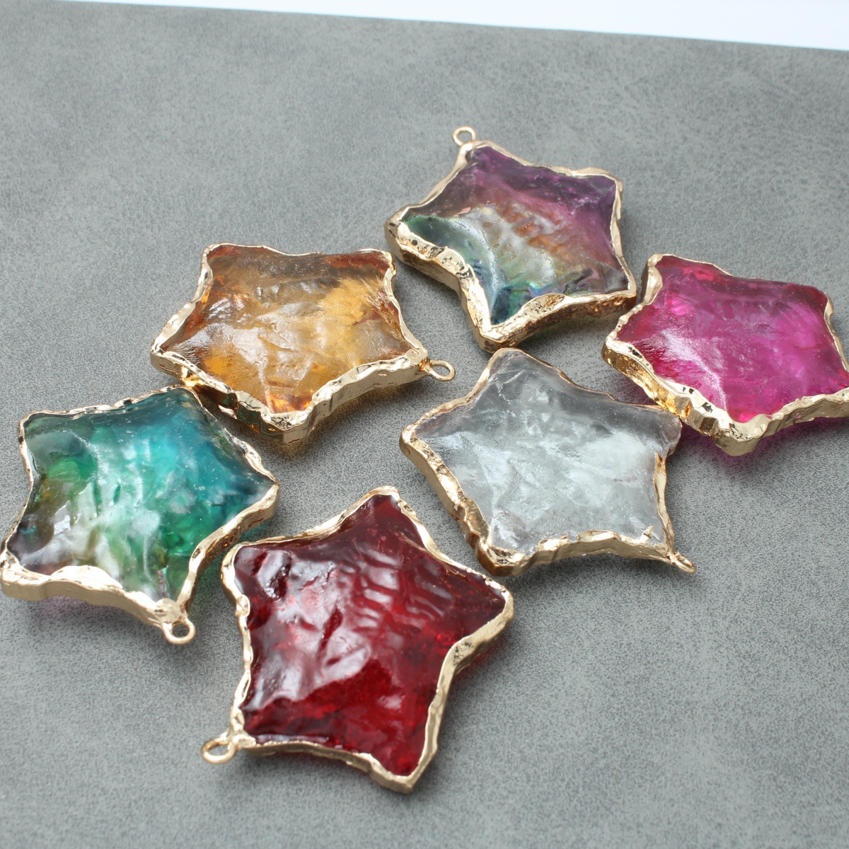 Pingentes quartzo natural, Estrela, banhado, DIY, Mais cores pare escolha, 40x34x11mm, vendido por PC