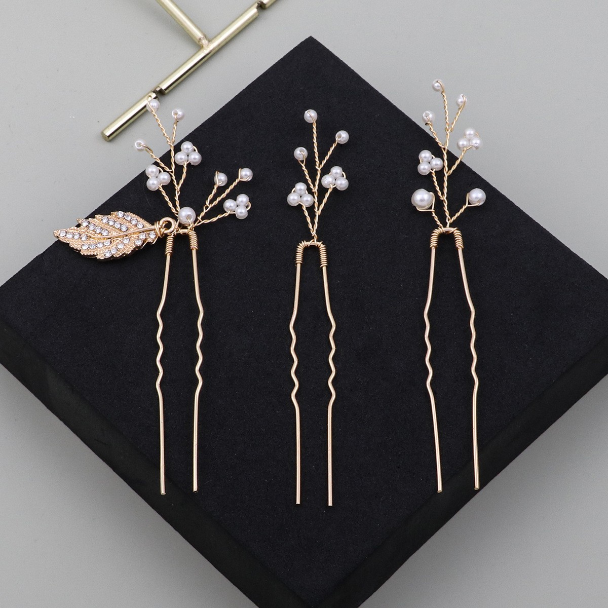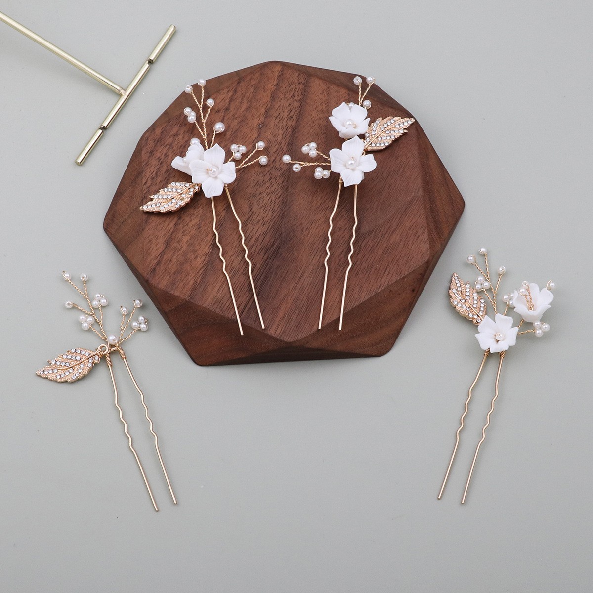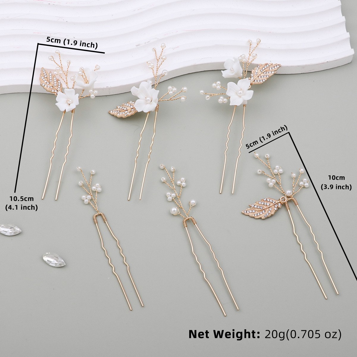 Pinos de cabelo nupcial, liga de zinco, with arame de latão & argila de polímero & Concha de resina, feito à mão, 6 peças & joias de moda & para mulher & com strass, ouro, vendido por Defina
