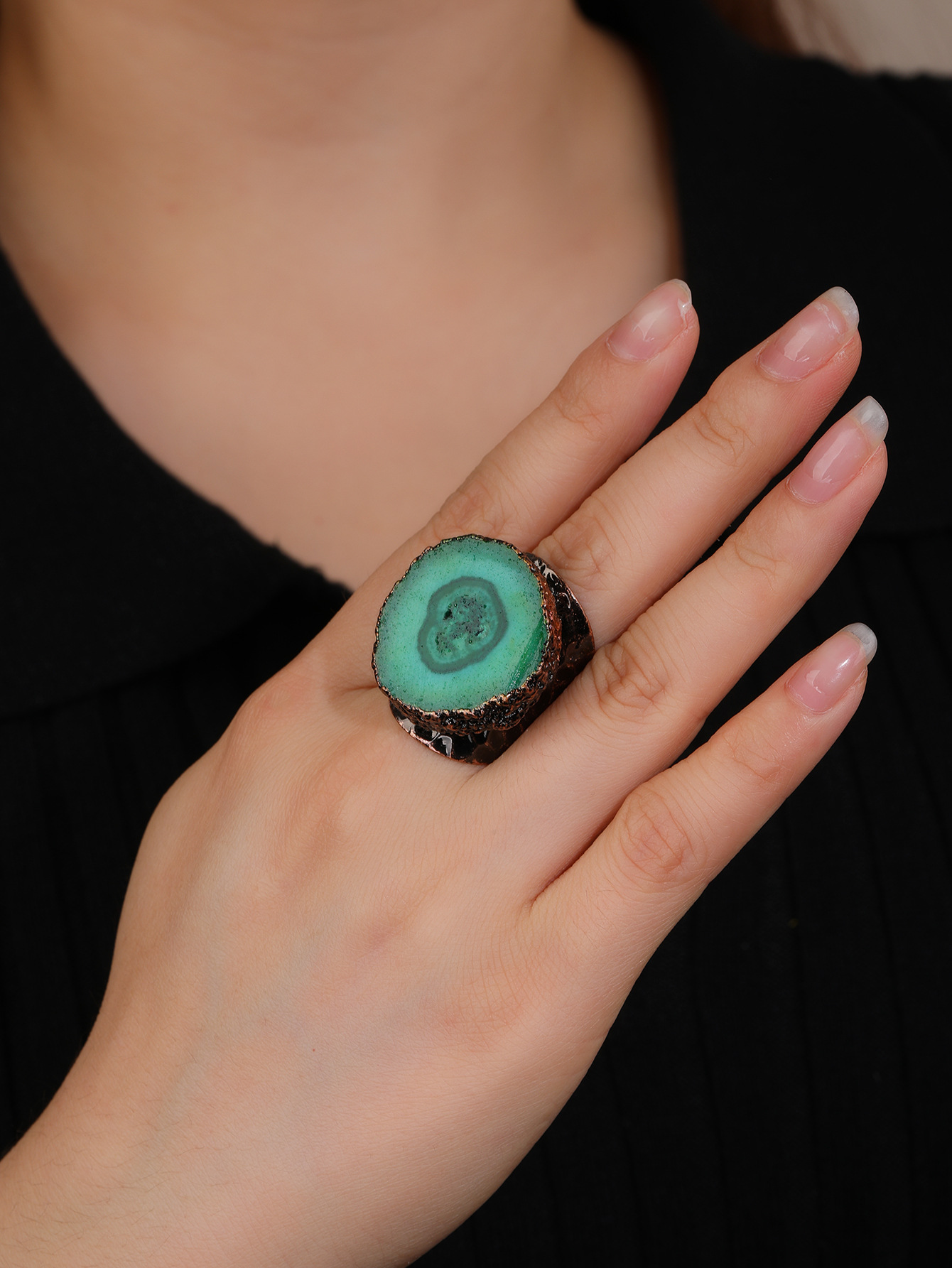 Quartzo natural Cuff Ring Finger, with liga de zinco, banhado cor bronze antigo, ajustável & para mulher, Mais cores pare escolha, tamanho:9, vendido por PC