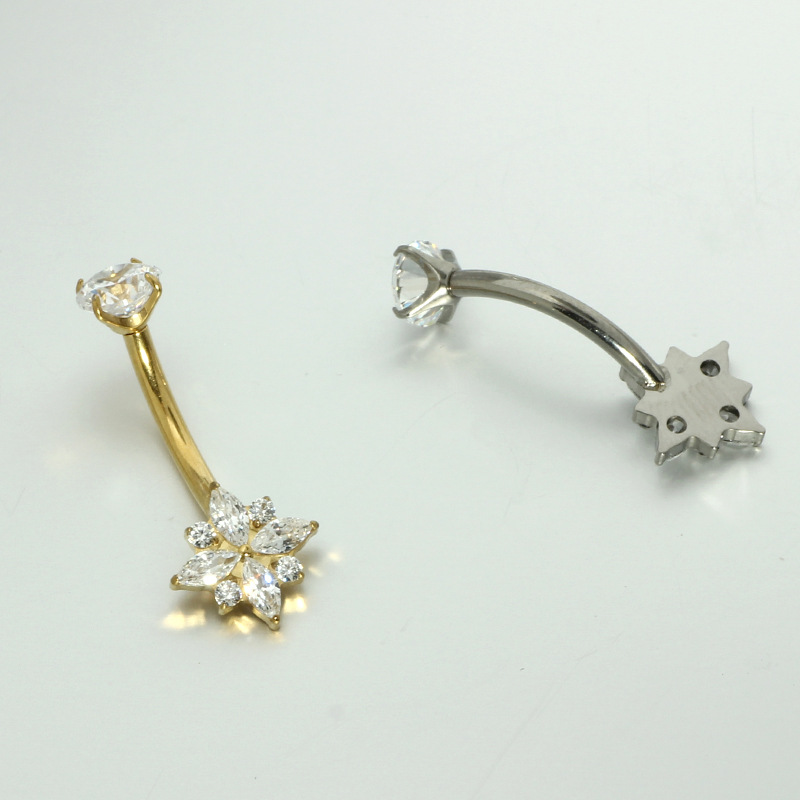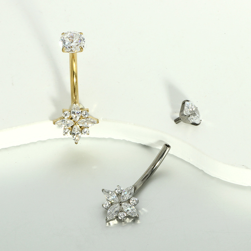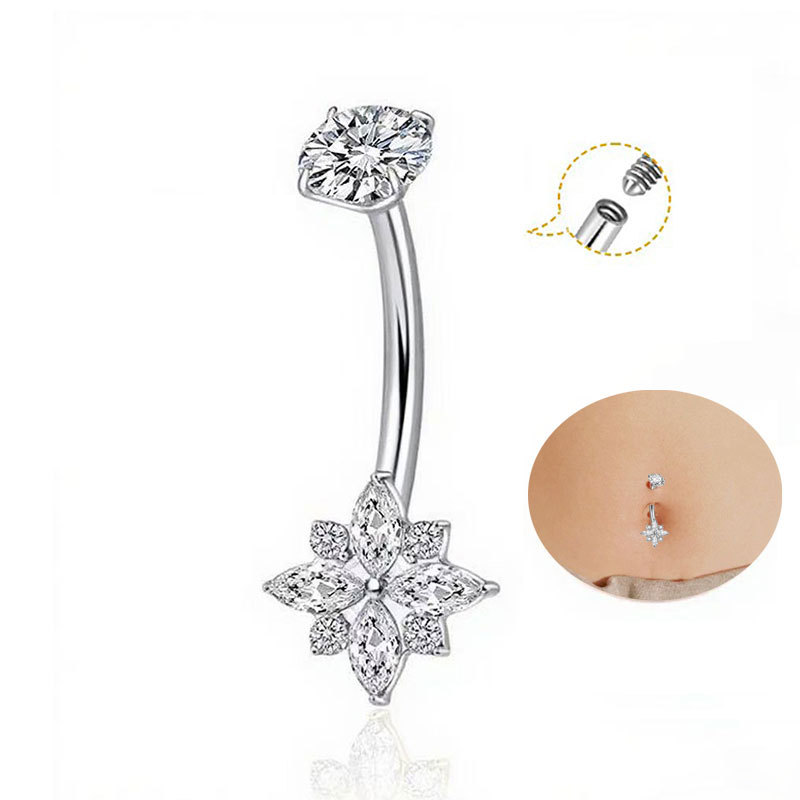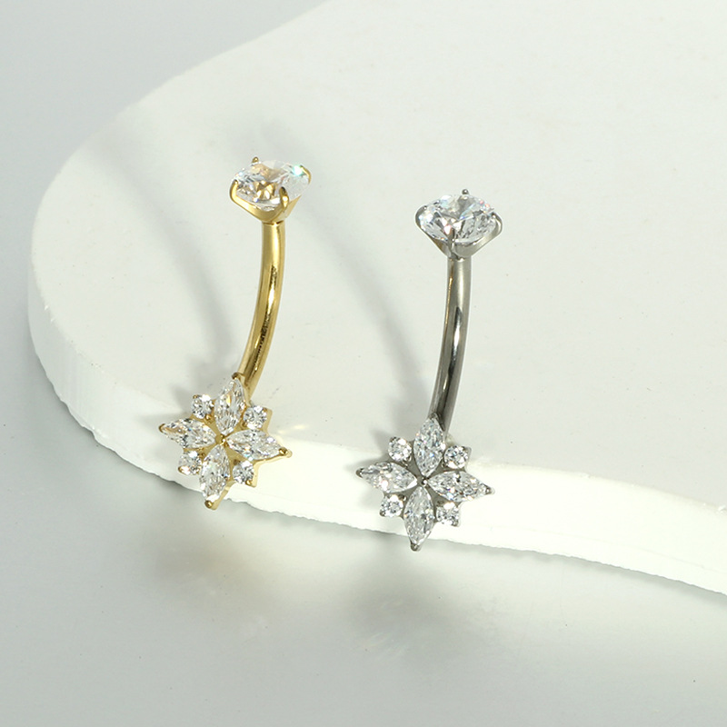 Titânio piercing para umbigo, Flor, banhado, joias de moda & micro pavimento em zircônia cúbica, Mais cores pare escolha, vendido por PC