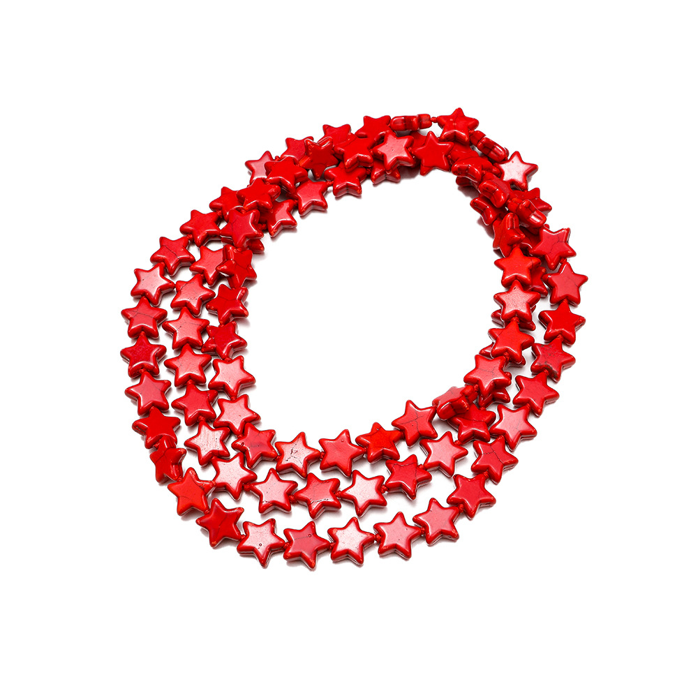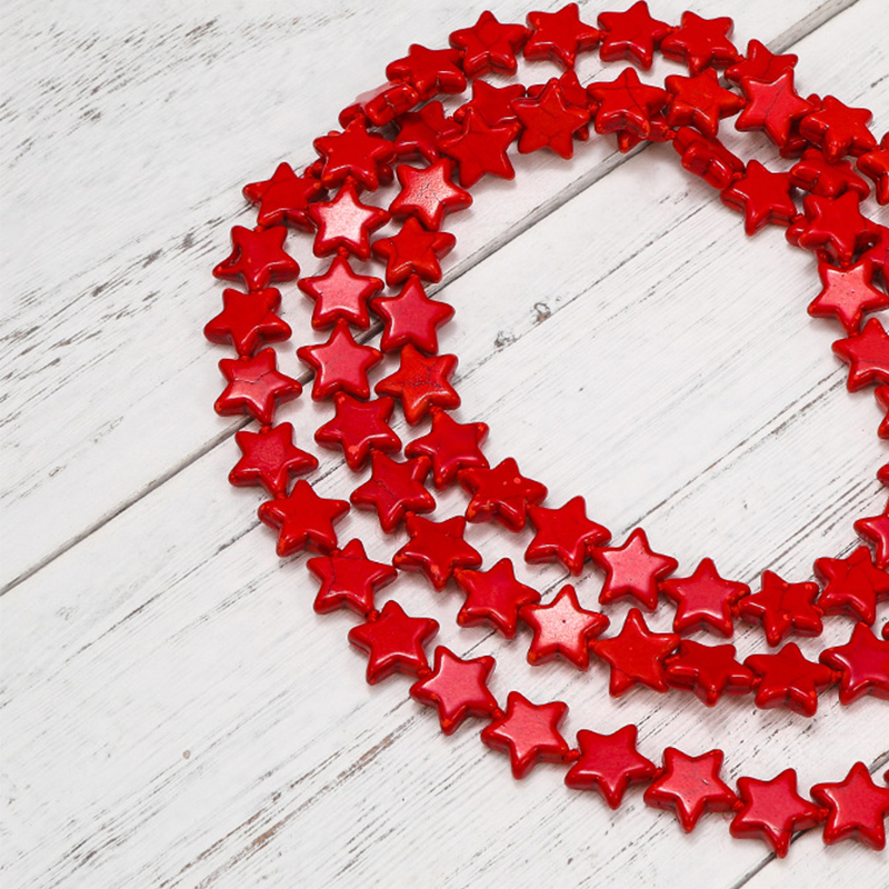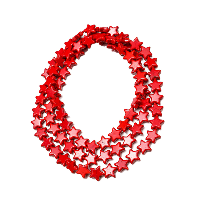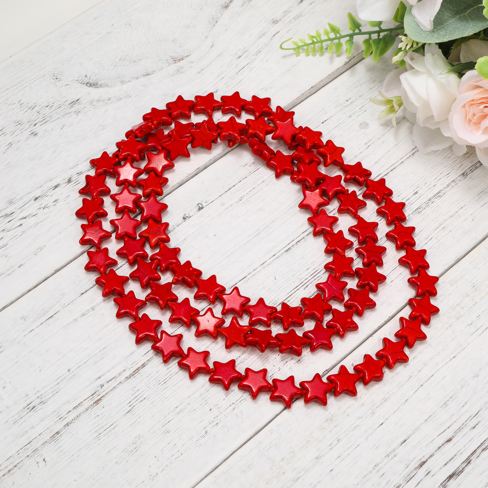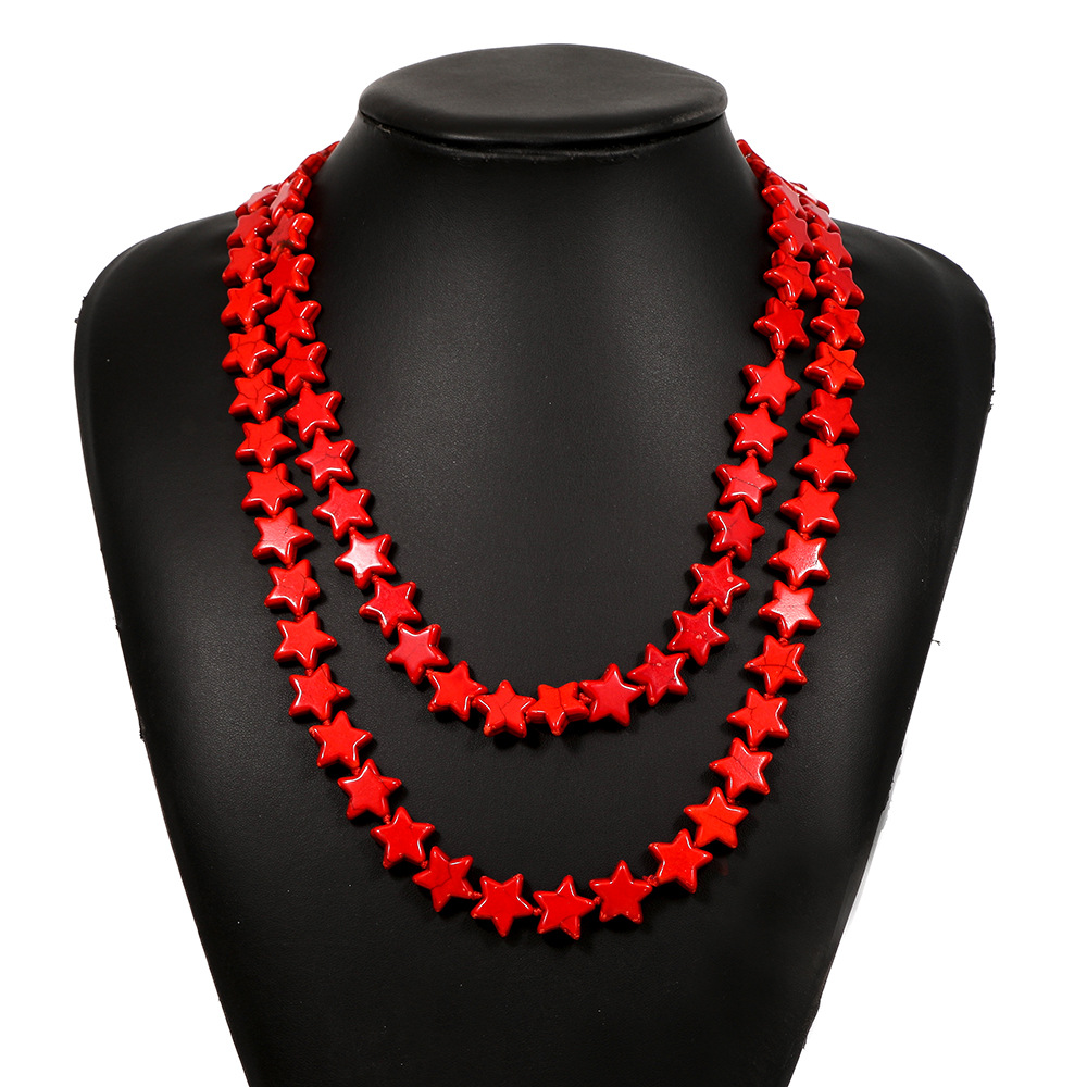 Turquesa sintética colar, Estrela, estilo folk & unissex & esmalte, vermelho, 15mm, comprimento Aprox 1.2 m, vendido por PC