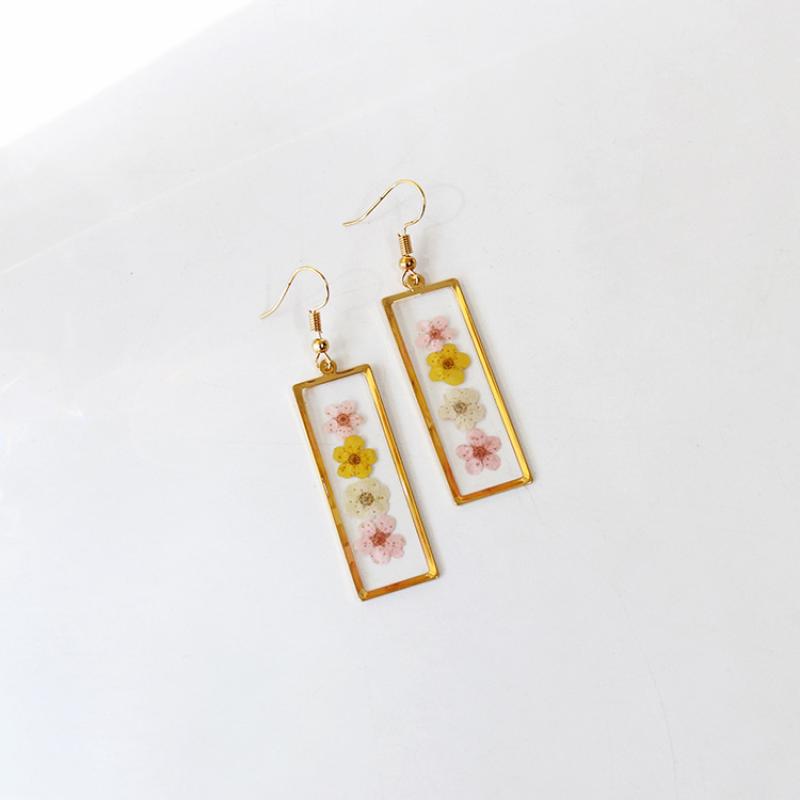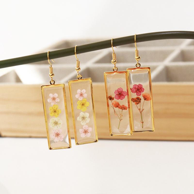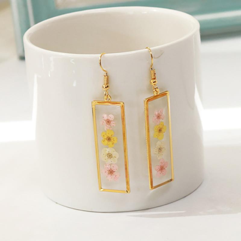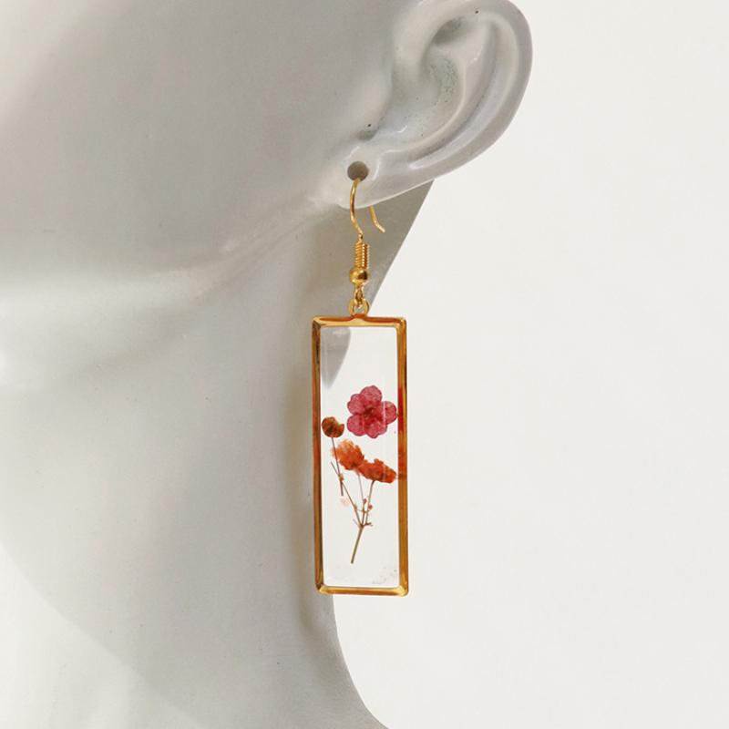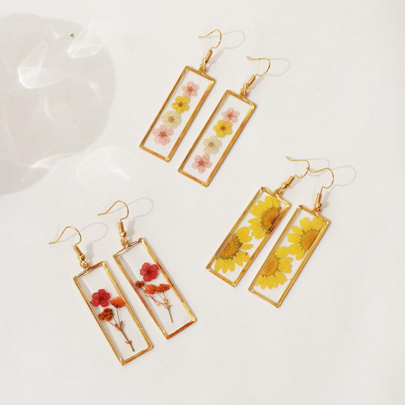 liga de zinco brincos tipo gota, with Flores secas & resina, joias de moda & Vario tipos a sua escolha & para mulher, dourado, 42x15mm, 6Pairs/Bag, vendido por Bag