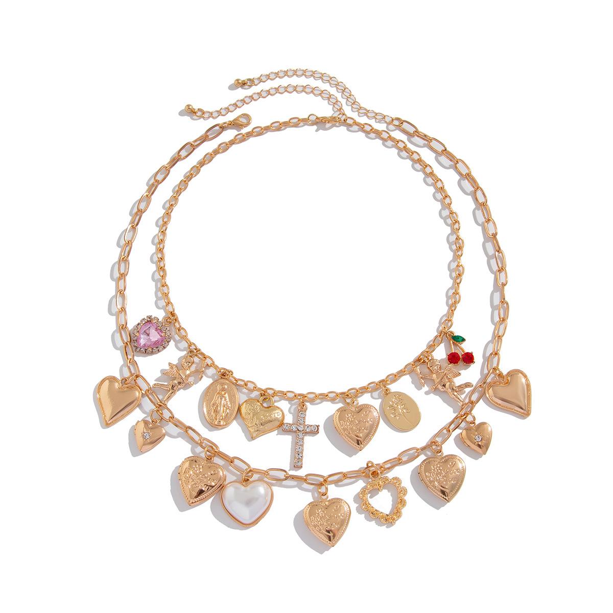 Colar de jóias de liga de zinco, with plástico, cromado de cor dourada, Camada Dupla & joias de moda & esmalte, Mais cores pare escolha, vendido por PC