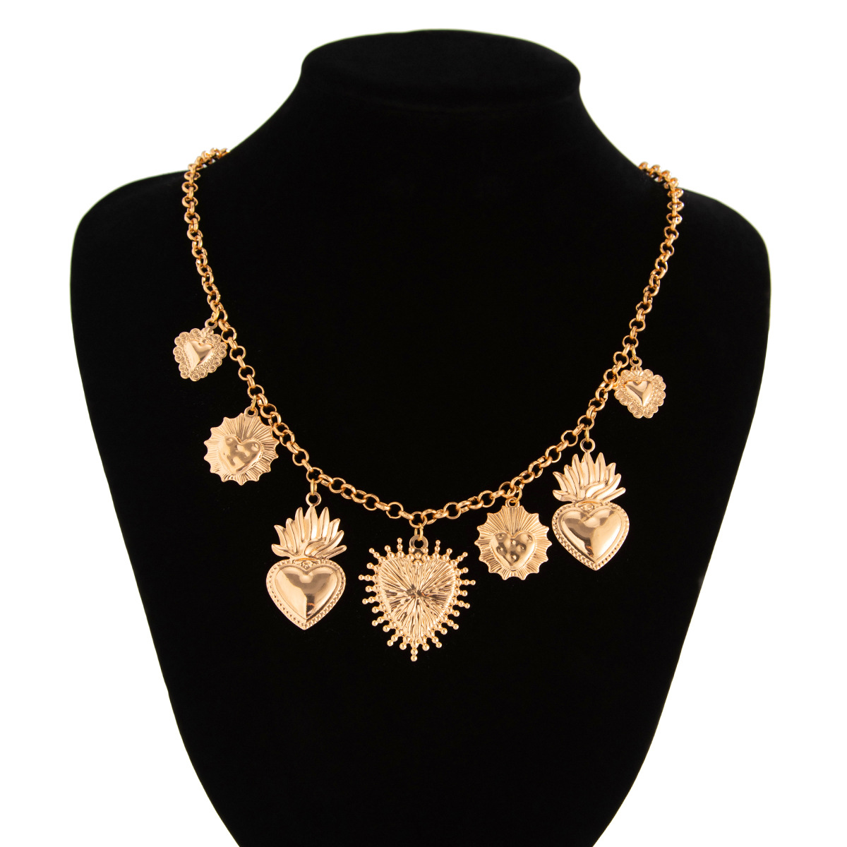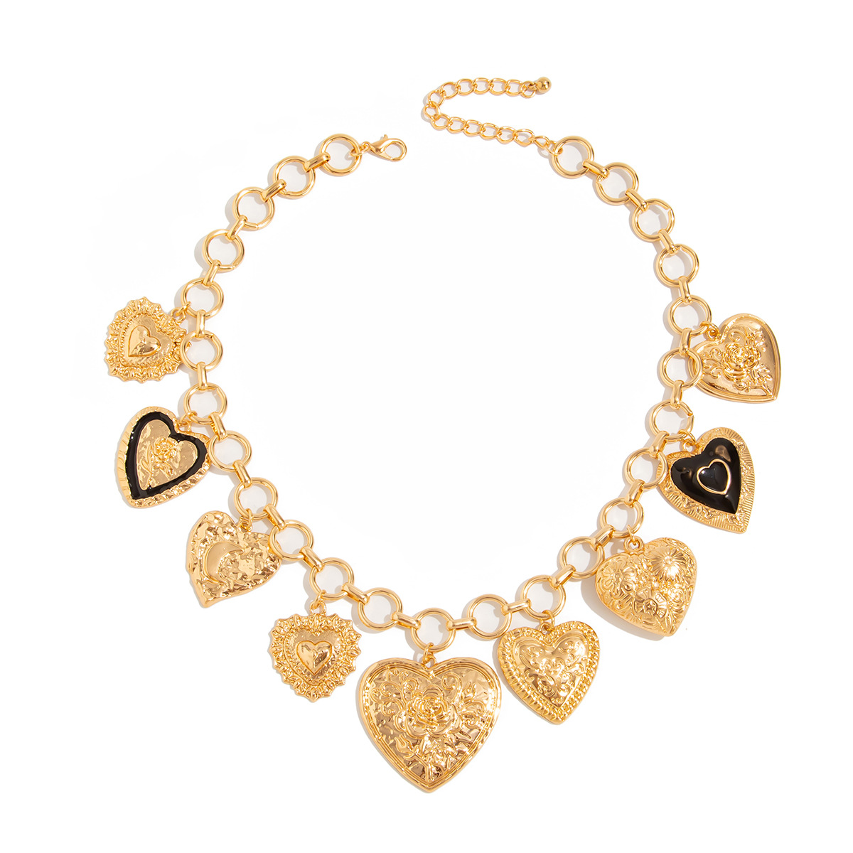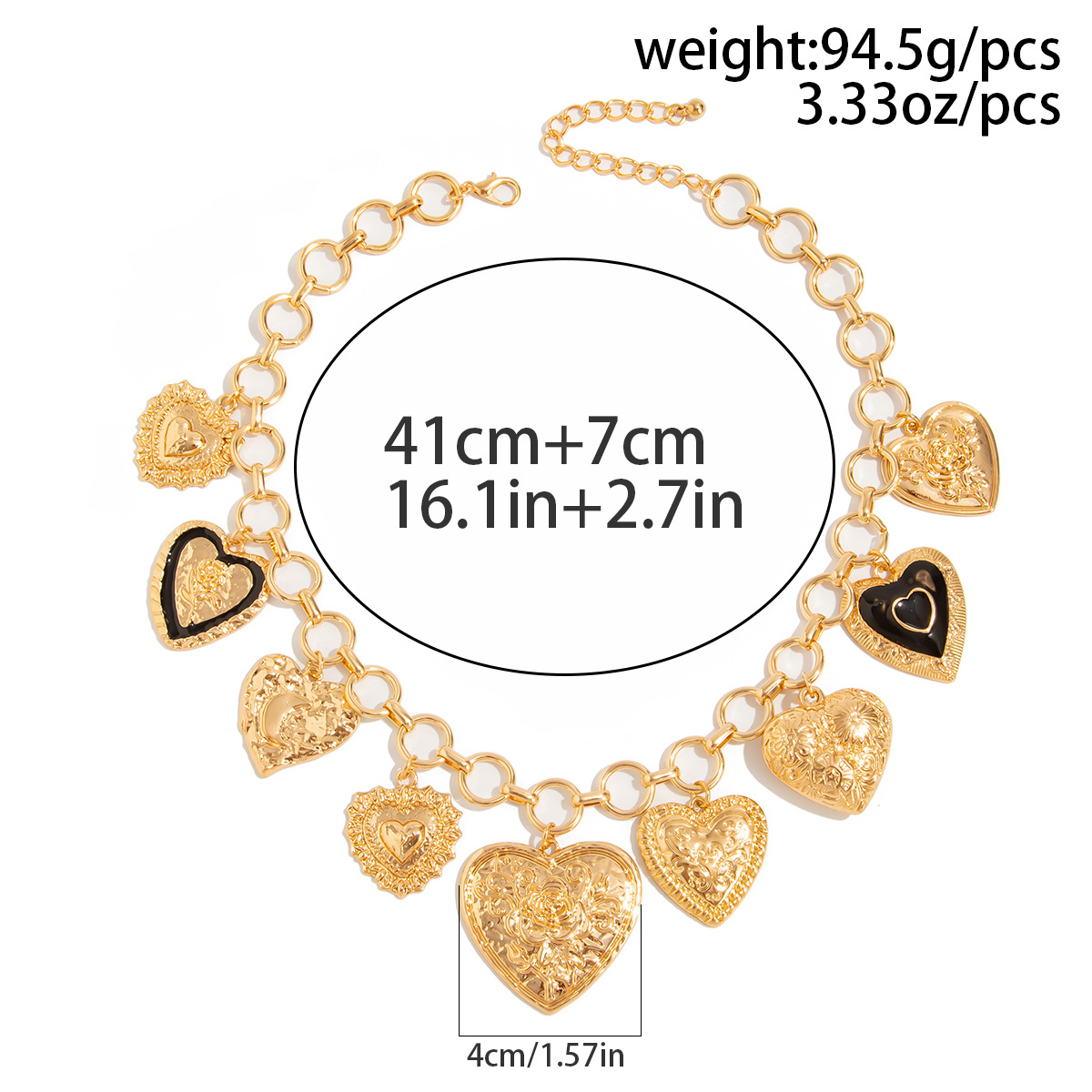 liga de zinco colar, with 5cm extender chain, olho, cromado de cor dourada, joias de moda & unissex, pendant size 38x31mm, comprimento Aprox 40 cm, vendido por PC