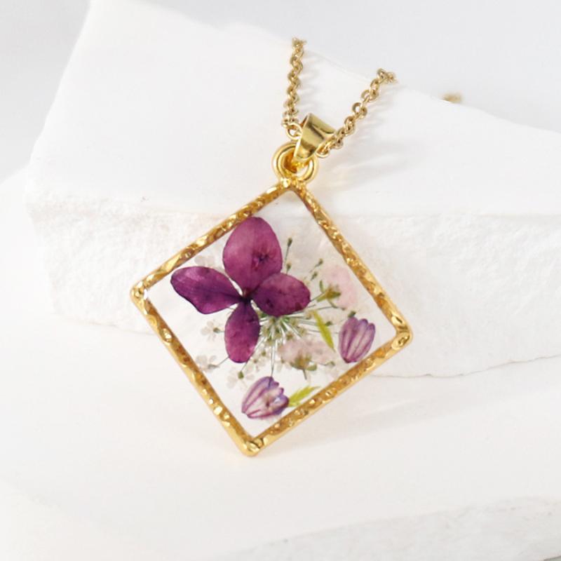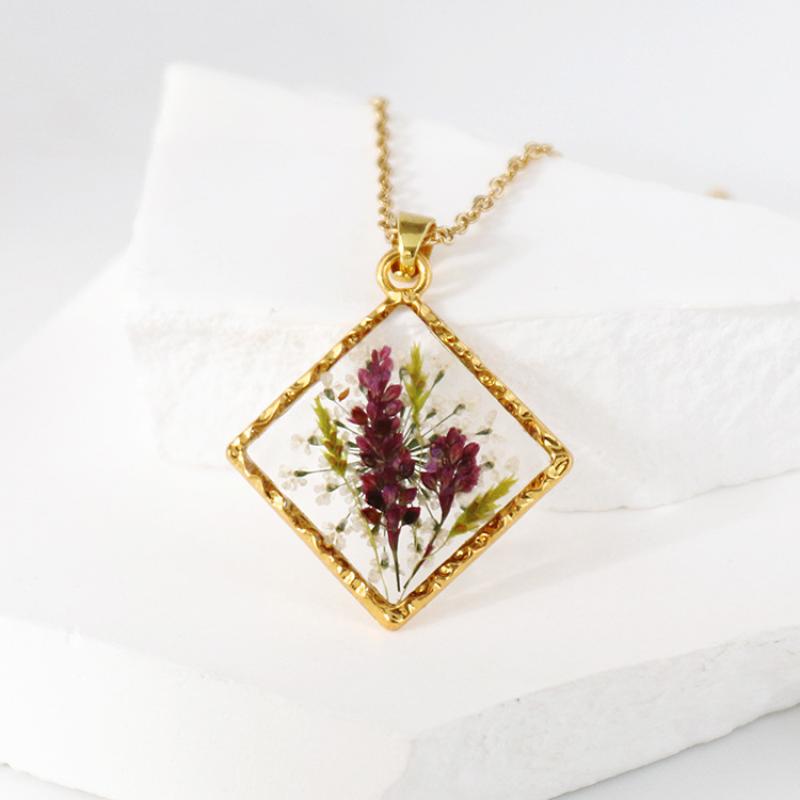 liga de zinco colar, with Flores secas & resina, feito à mão, joias de moda & Varios pares a sua escolha & para mulher, dourado, comprimento Aprox 45 cm, 6PCs/Bag, vendido por Bag
