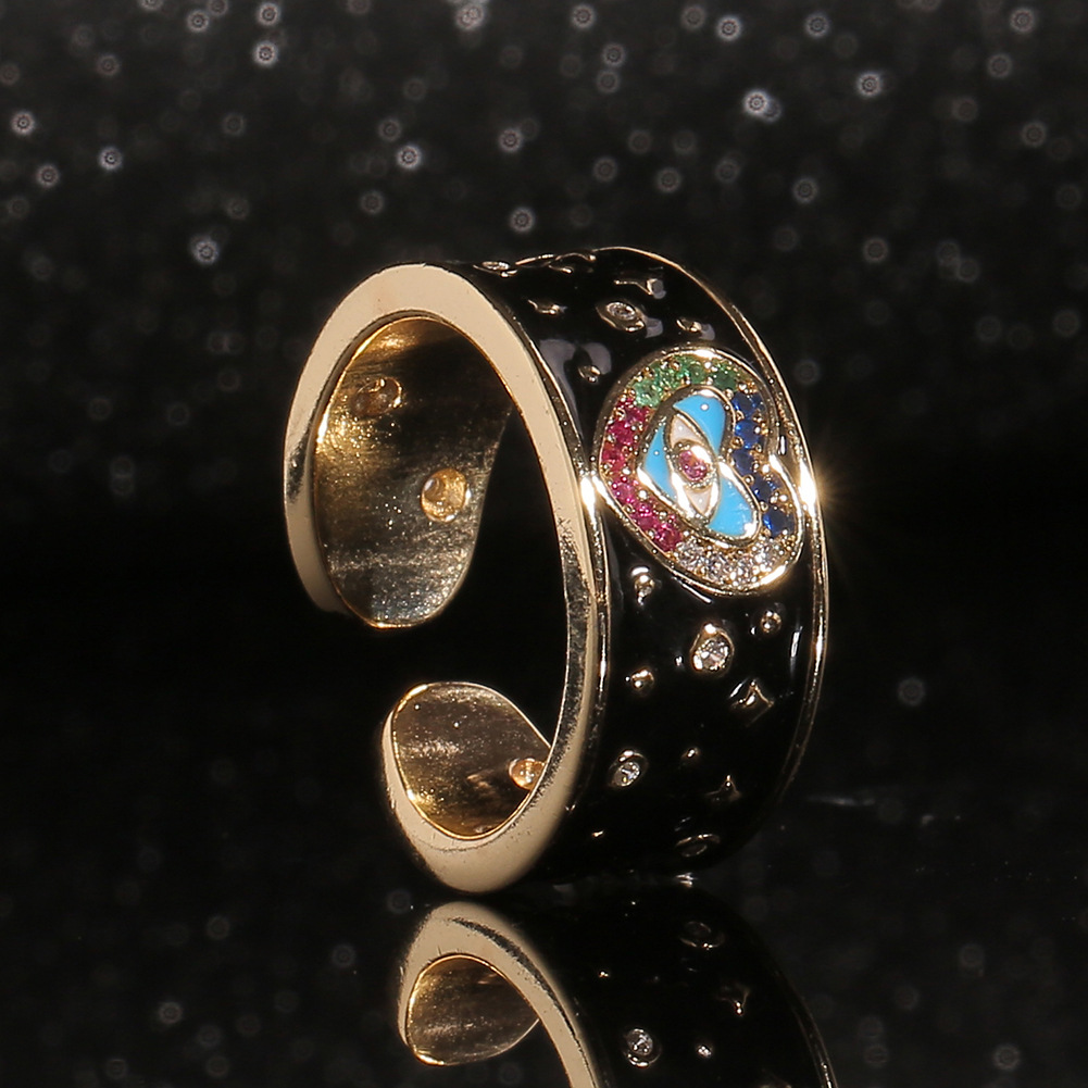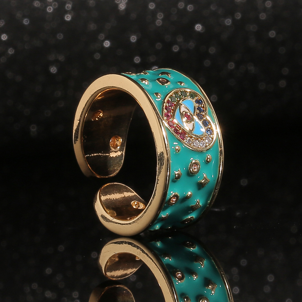 cobre Cuff Ring Finger, cromado de cor dourada, ajustável & micro pavimento em zircônia cúbica & para mulher & esmalte, Mais cores pare escolha, 21mm, vendido por PC