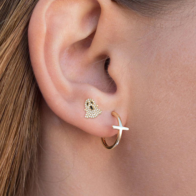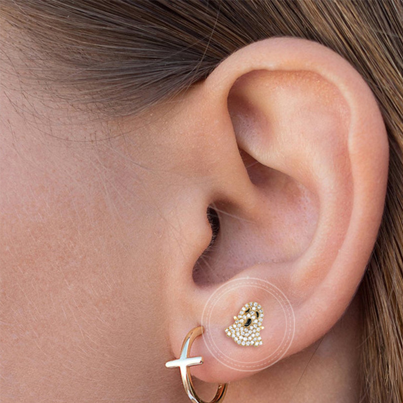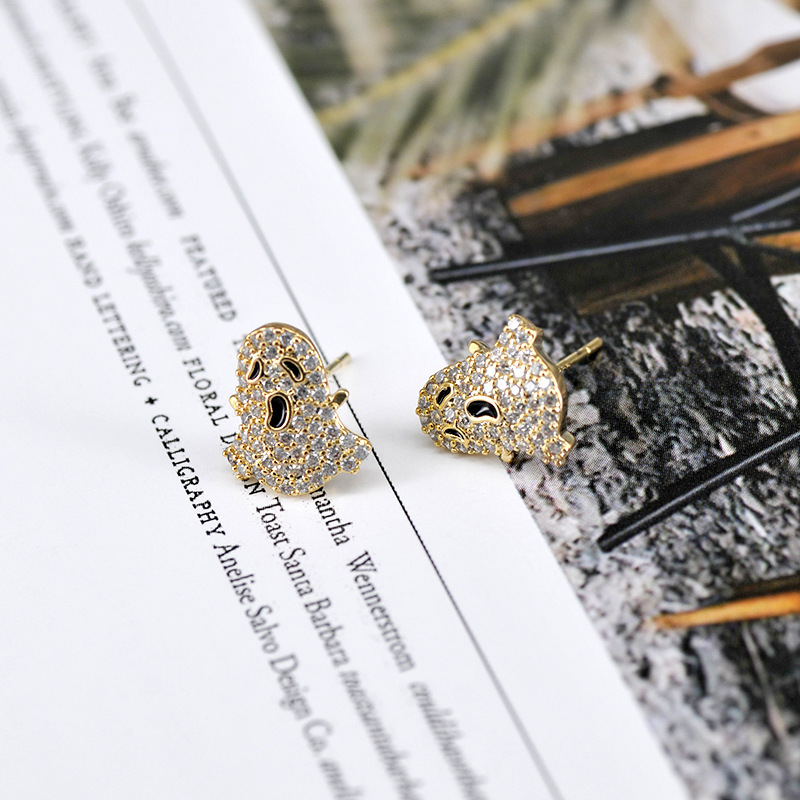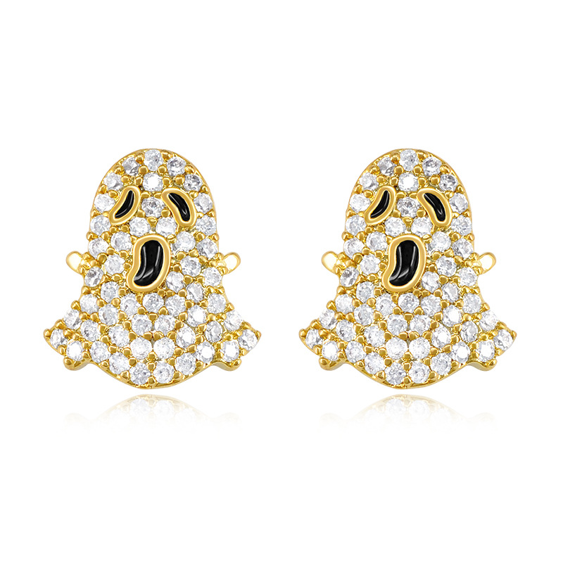 cobre brincos, fantasma, cromado de cor dourada, Design de Halloween & para mulher & com strass, 20mm, vendido por par