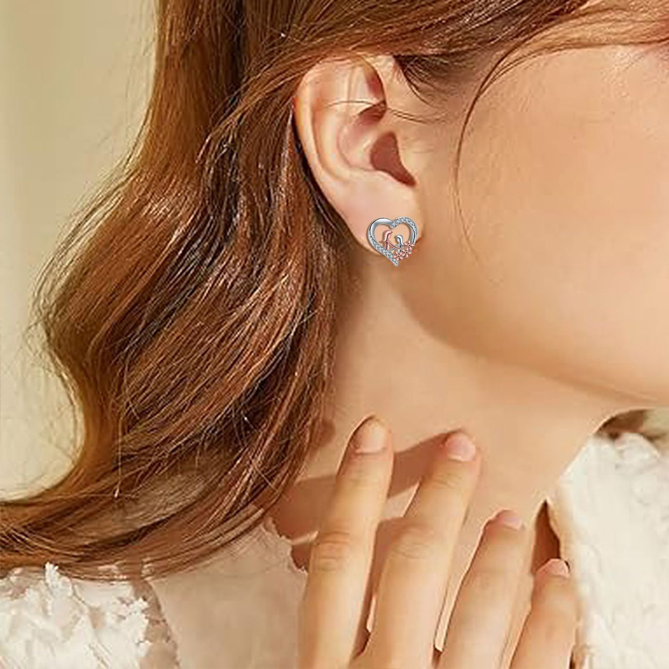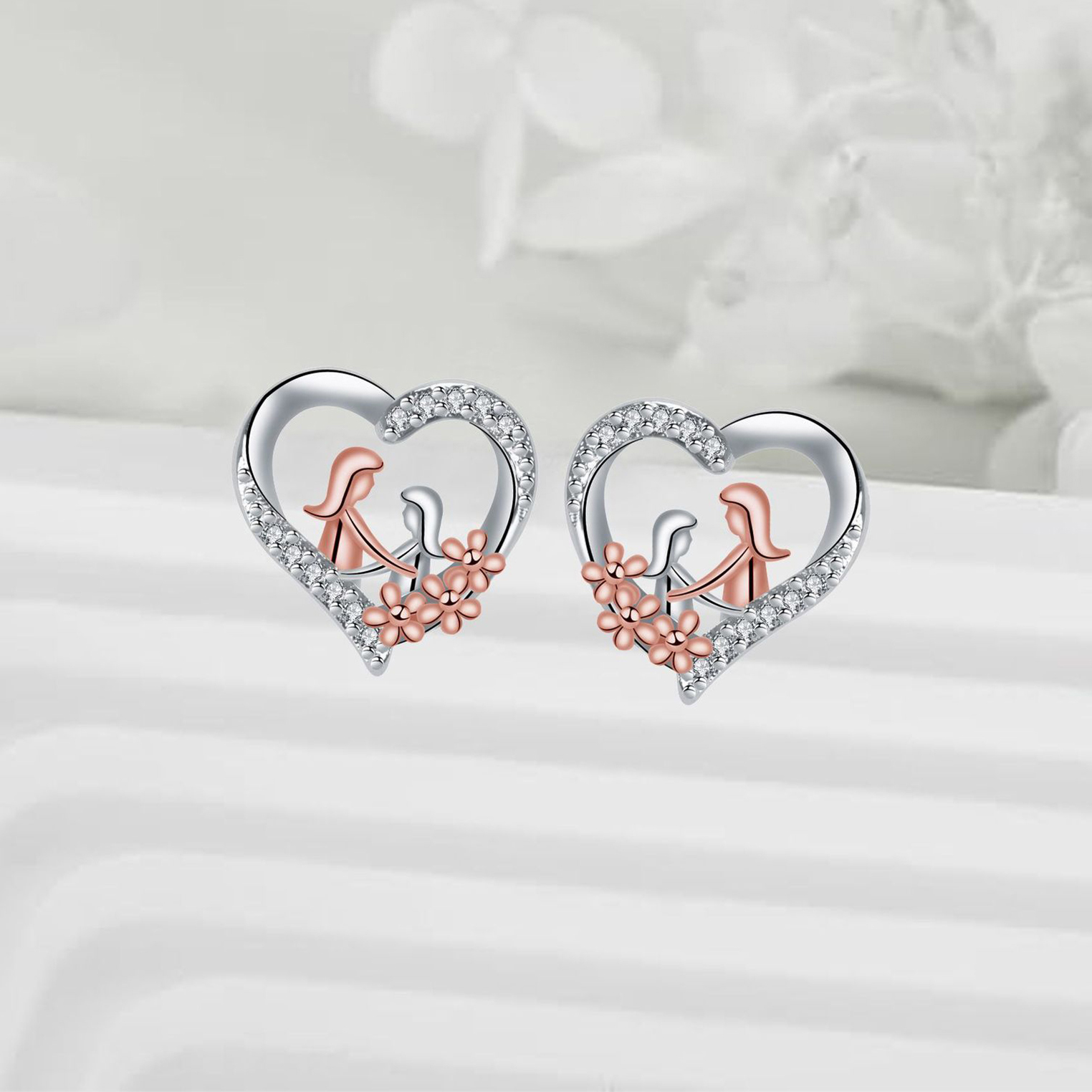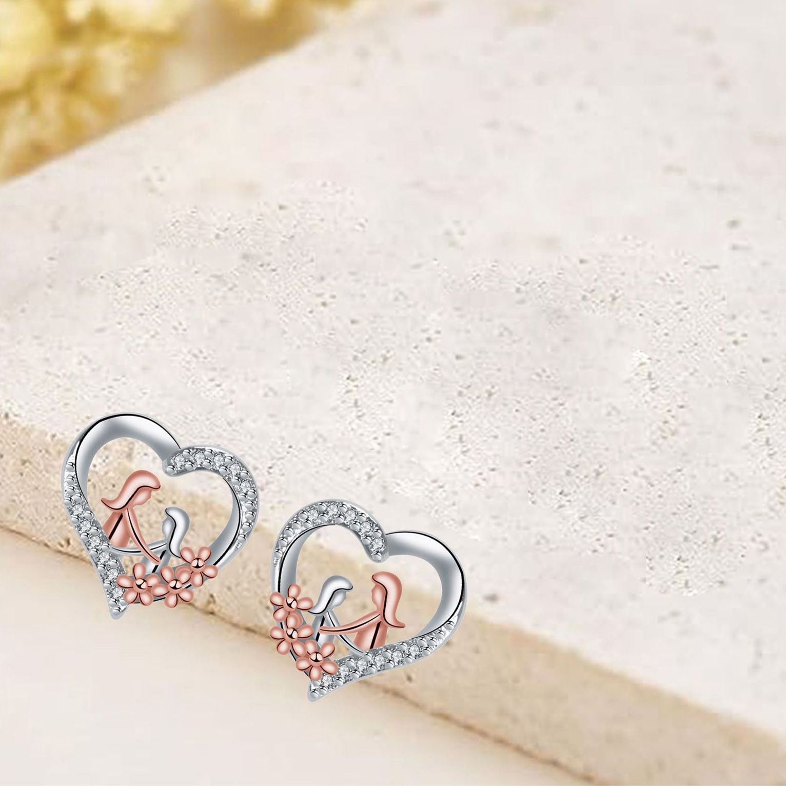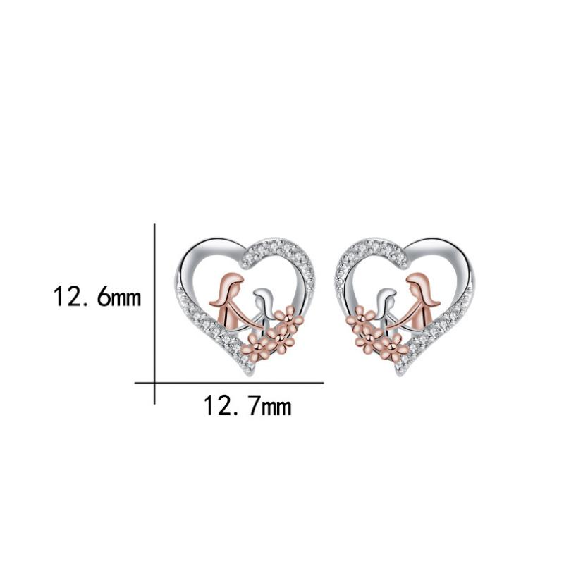 cobre brincos, Coração, banhado, Dia das Mães Jóias & micro pavimento em zircônia cúbica & para mulher, 12.70x12.60mm, vendido por par