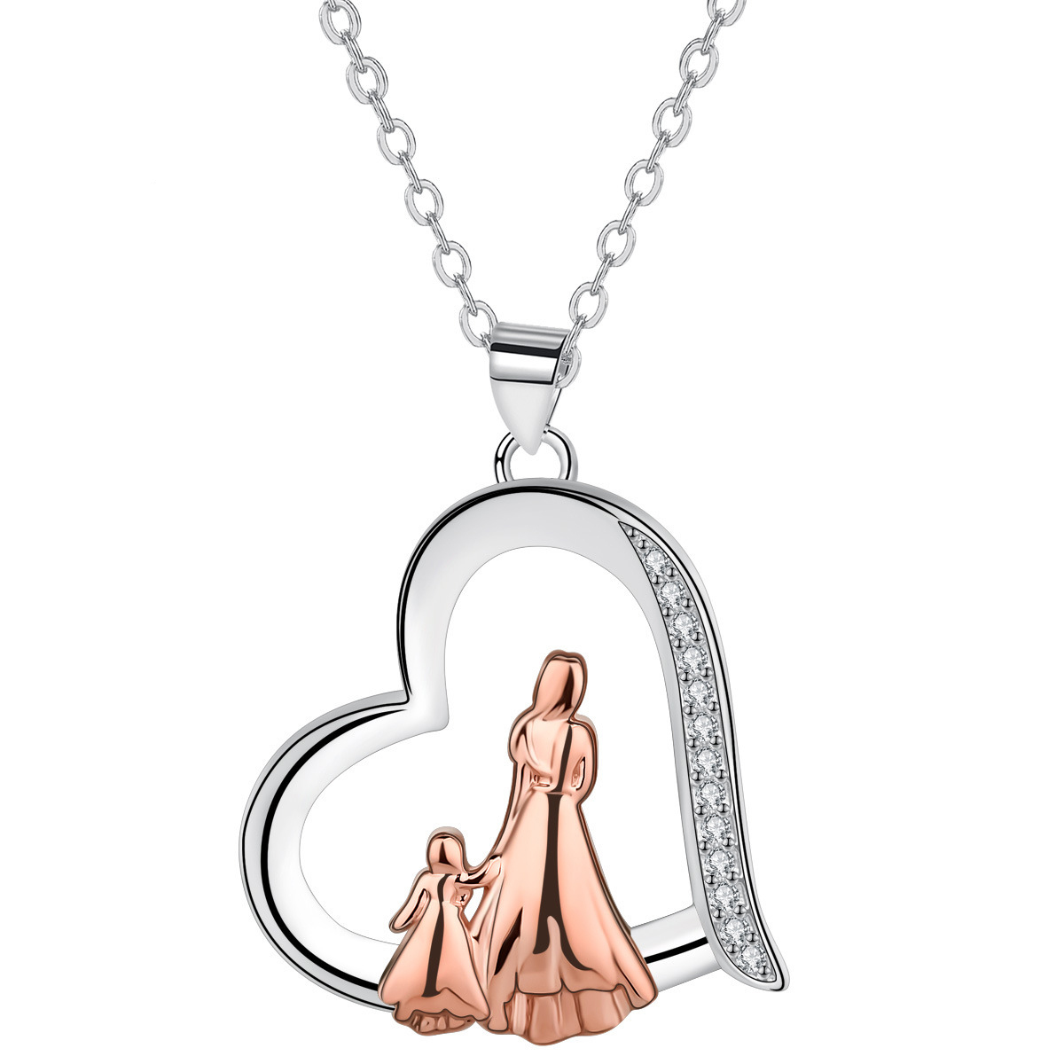 cobre colar, with 5cm extender chain, Coração, banhado, Dia das Mães Jóias & micro pavimento em zircônia cúbica & para mulher, comprimento Aprox 45 cm, vendido por PC