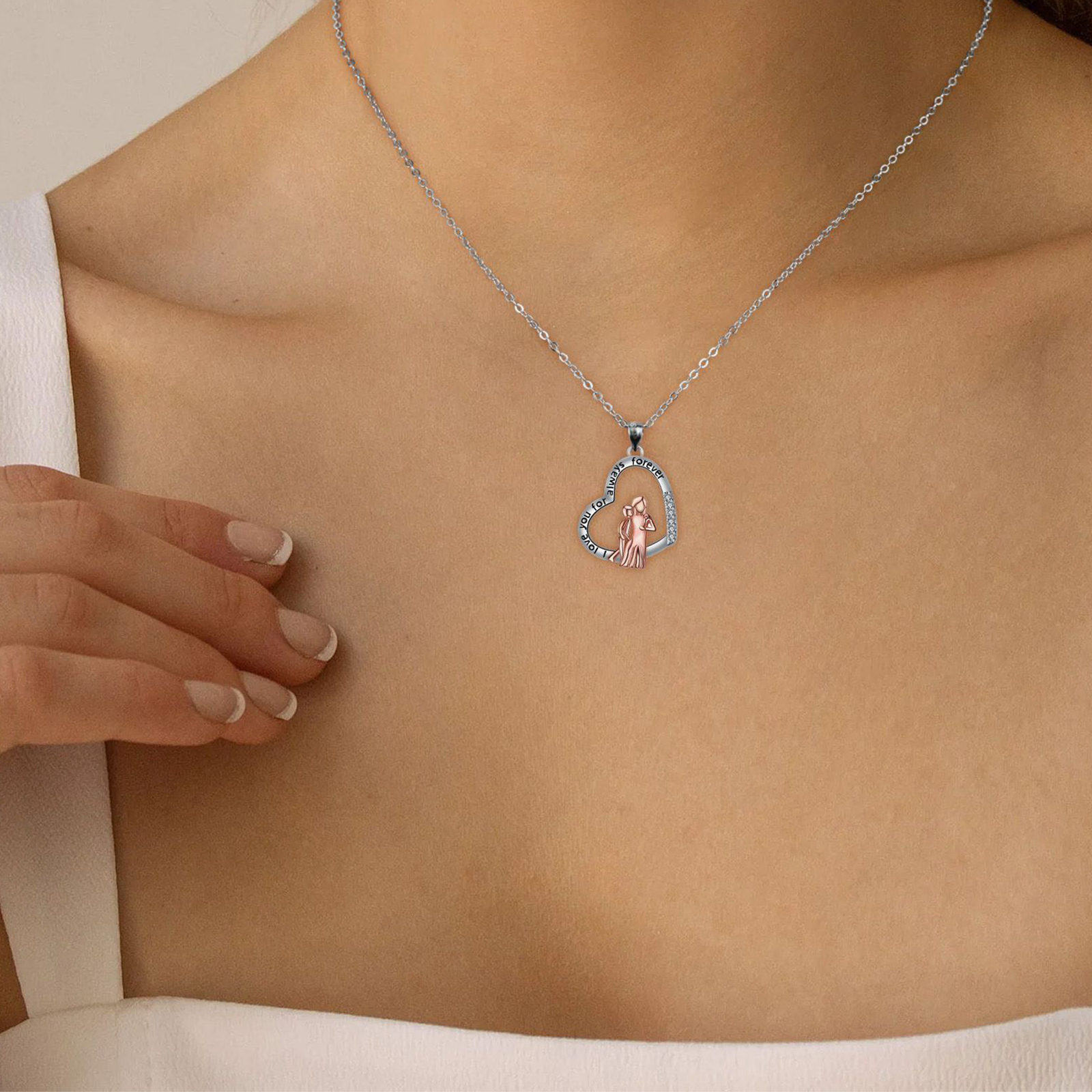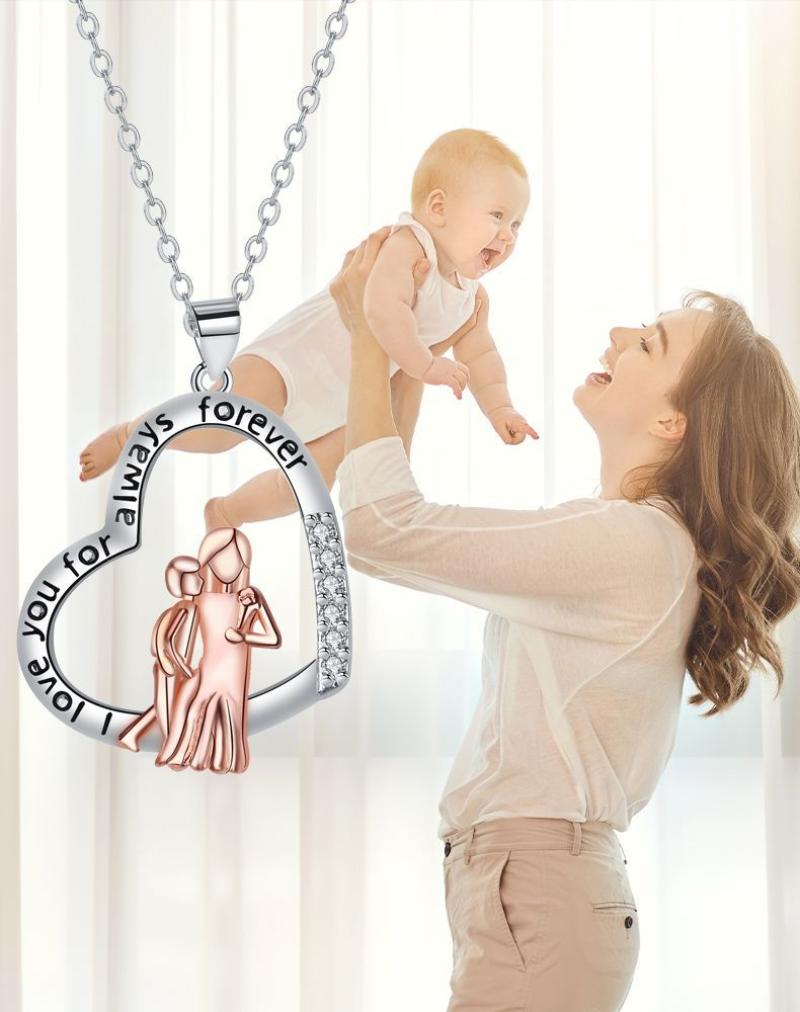 cobre colar, with 5cm extender chain, Coração, banhado, Dia das Mães Jóias & micro pavimento em zircônia cúbica & para mulher, comprimento Aprox 45 cm, vendido por PC