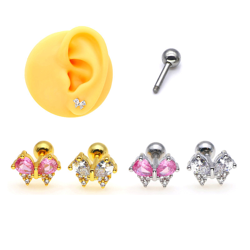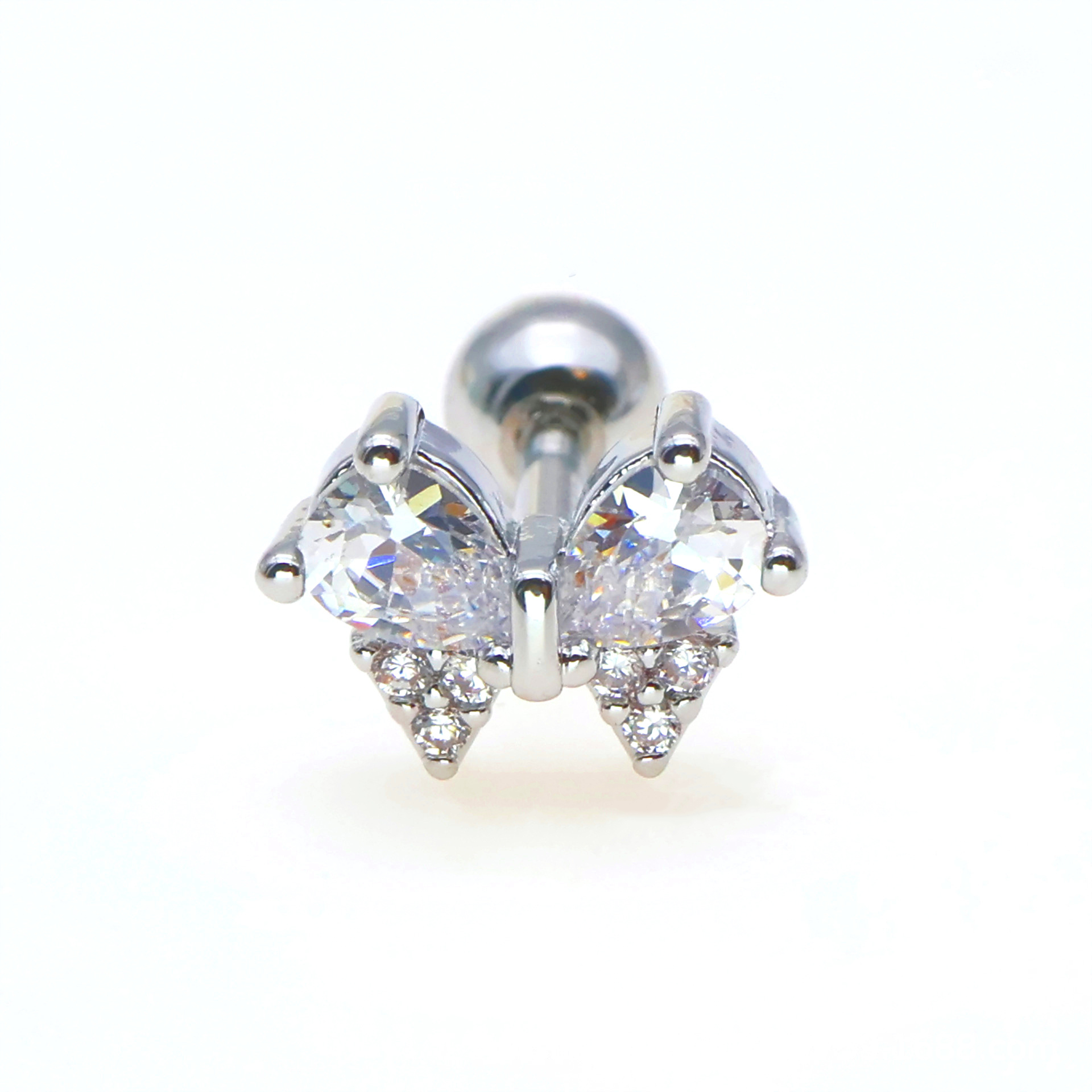 cobre piercing para orelha, Borboleta, banhado, micro pavimento em zircônia cúbica & para mulher, Mais cores pare escolha, 8mm, vendido por PC