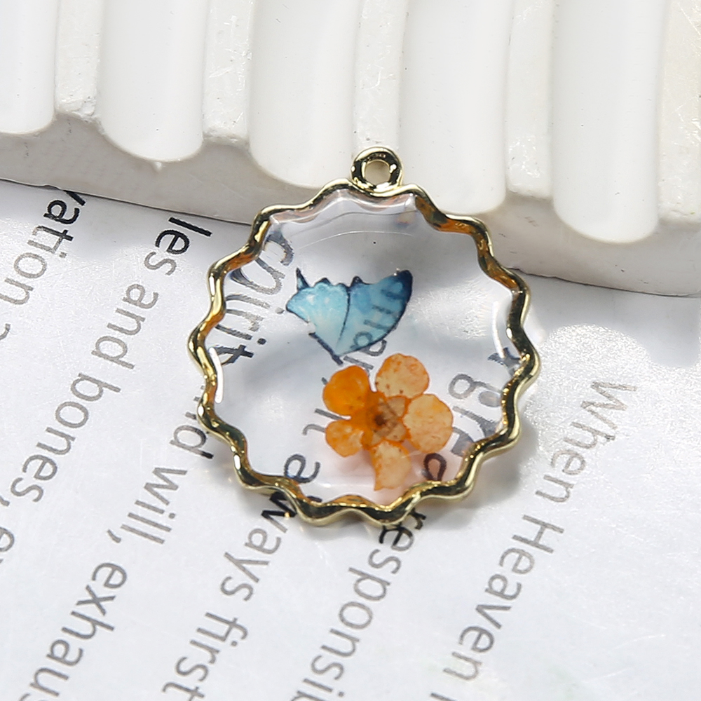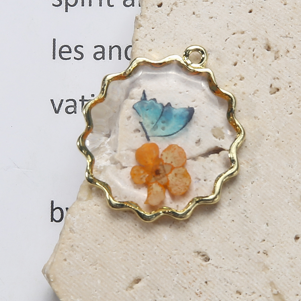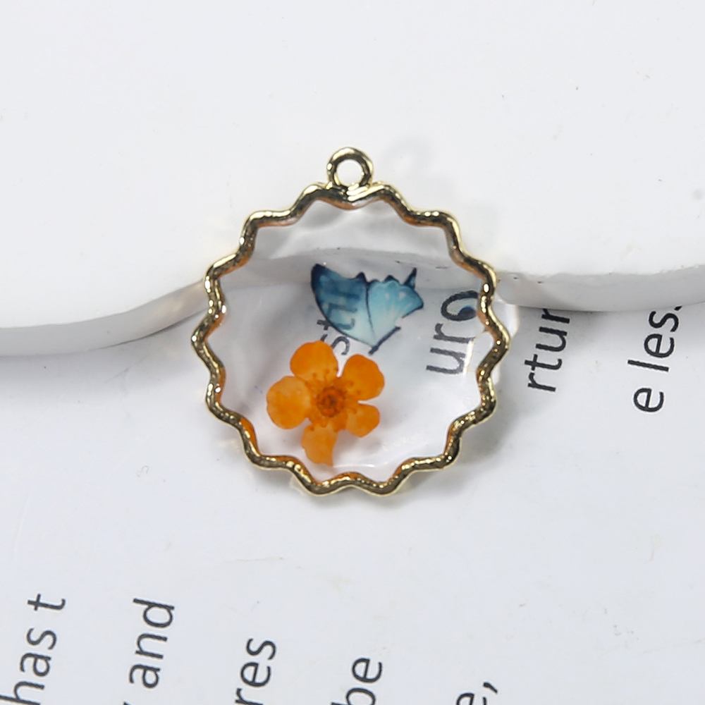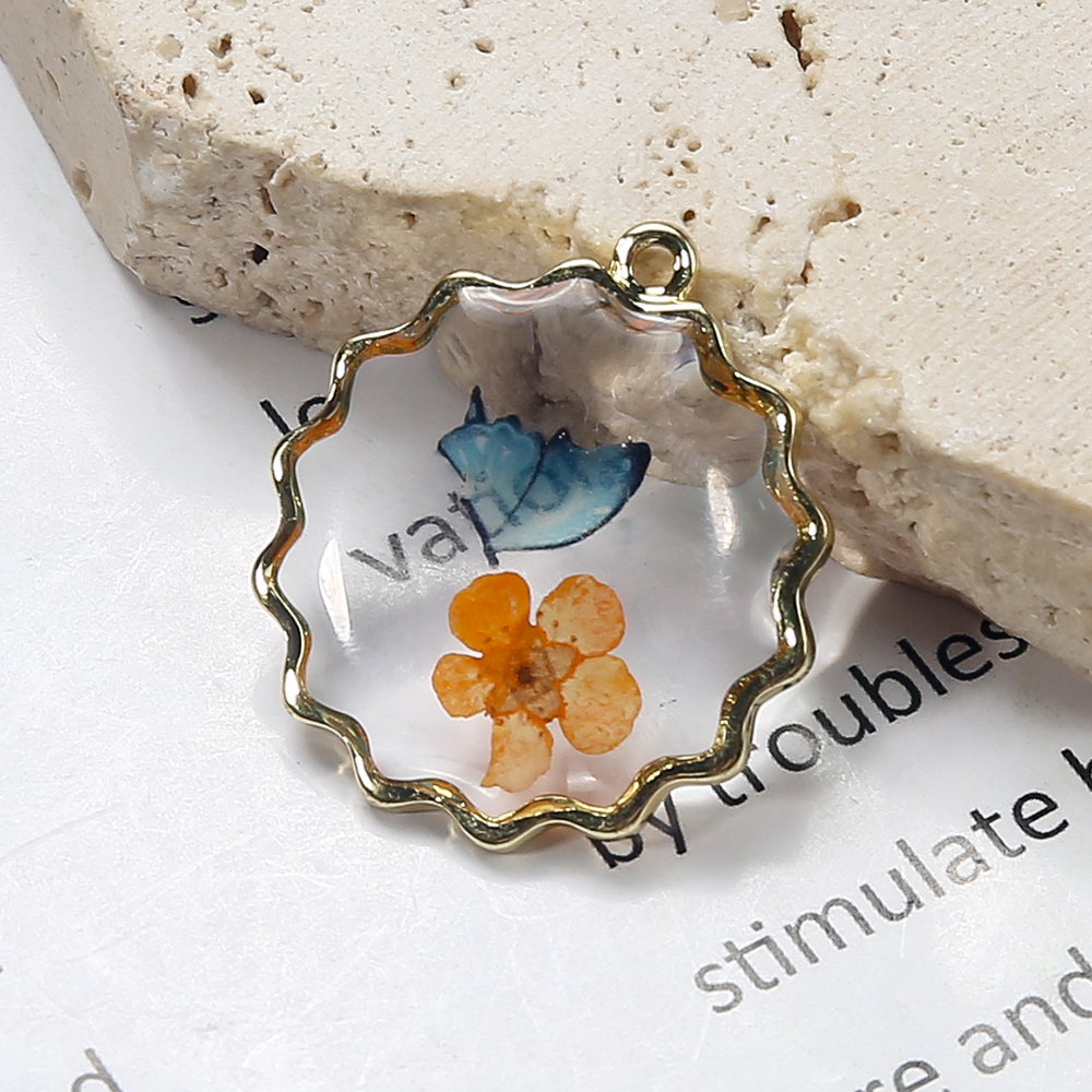 cobre pingente, with Flores secas & resina, banhado, DIY, cores misturadas, níquel, chumbo e cádmio livre, 27.60x4.21x29.85mm, vendido por PC