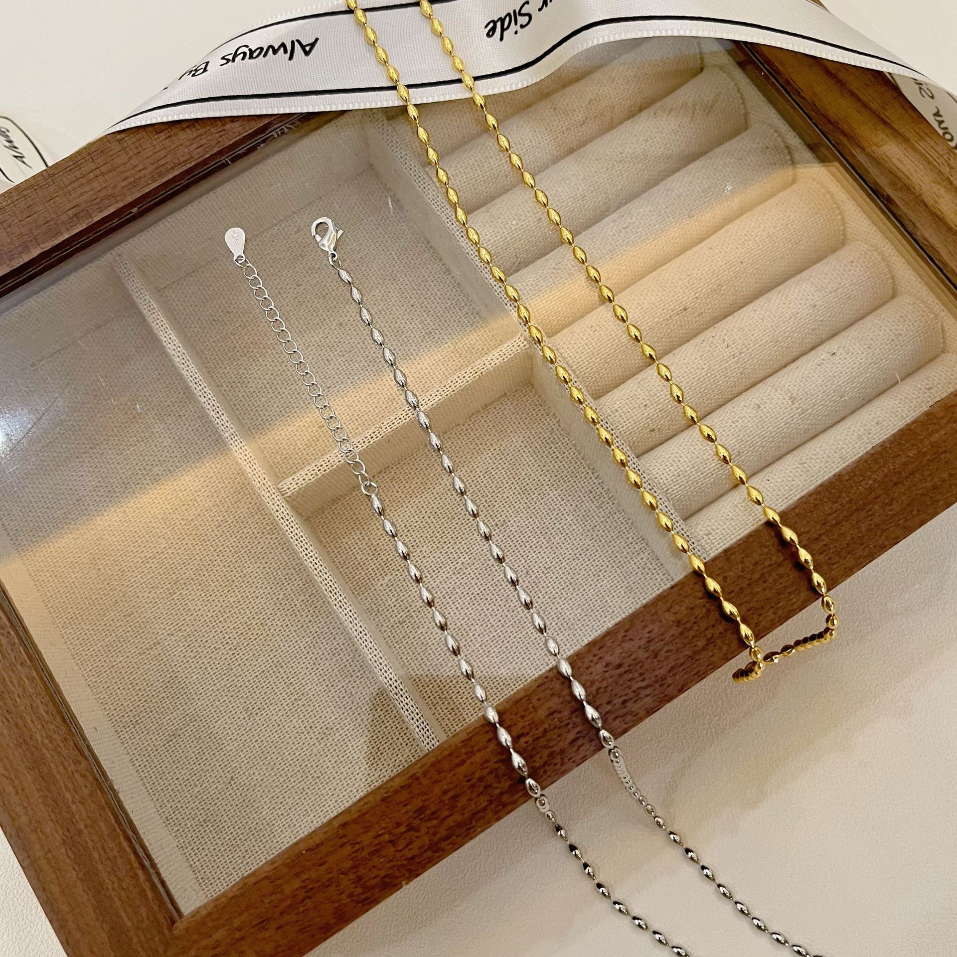 1:Platinum olive beads single chain2:Gold Olive beads single chain3:Platinum olive bead chain   pea suit4:Gold Olive bead chain   pea suit