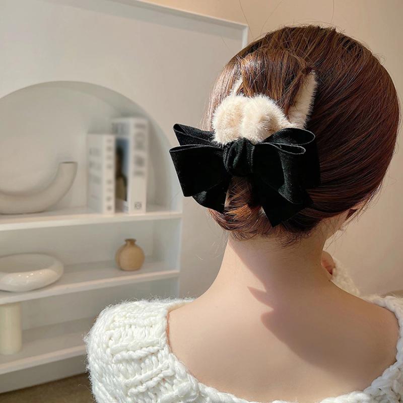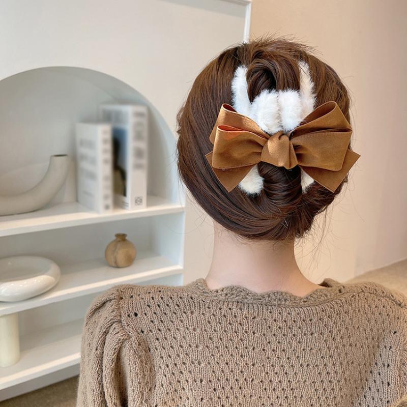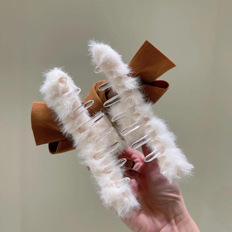 pelúcia grampo de cabelo com garra, with roupa & plástico, Laço, feito à mão, Estilo coreano & para mulher, Mais cores pare escolha, 110mm, vendido por PC