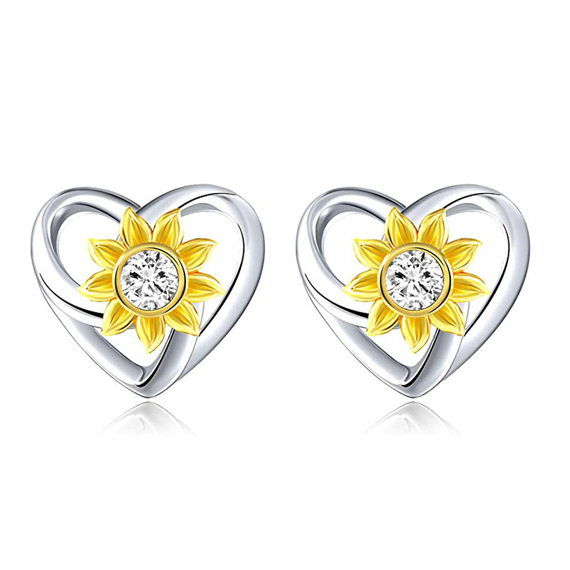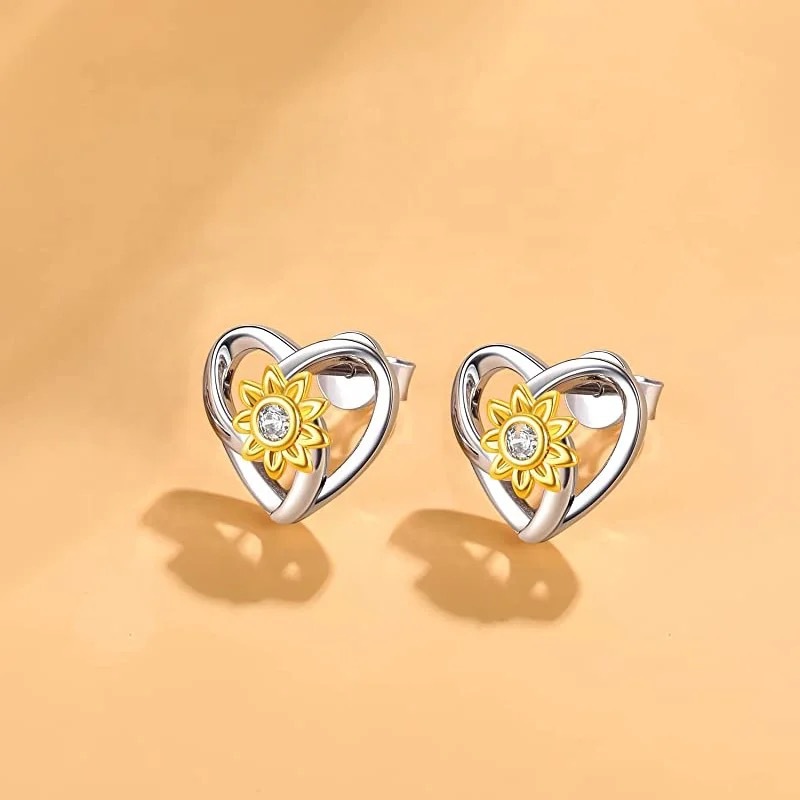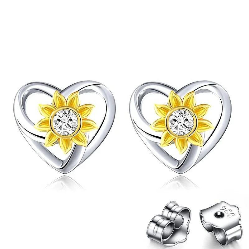 925 пробы Сережка-гвоздик, Сердце, инкрустированное микро кубического циркония & Женский & отверстие, 12x13mm, продается Пара