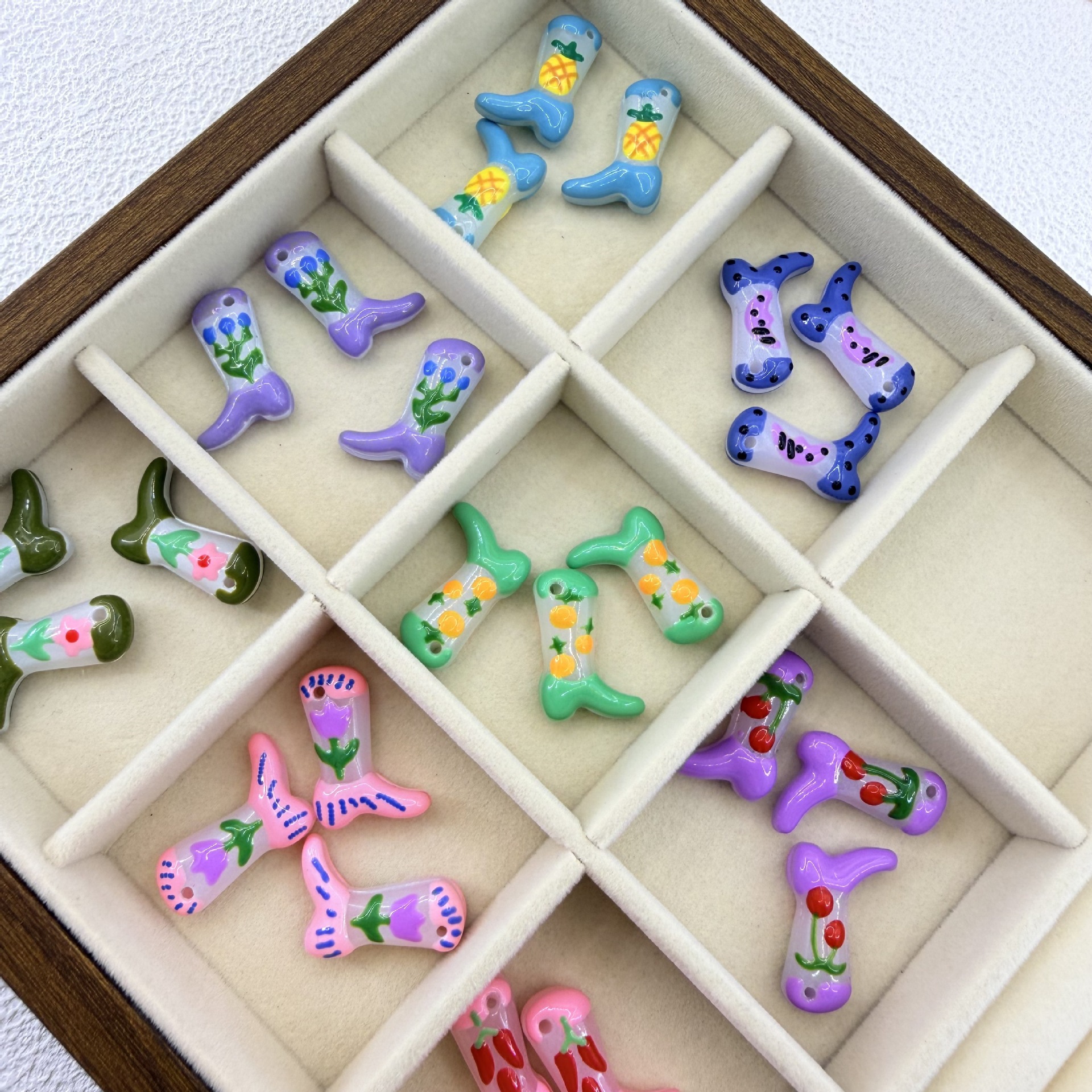 бусины Lampwork ручной работы, Лэмпворк, Обувь, рука рисунок., DIY, Много цветов для выбора, 16.50x24.20mm, 100ПК/сумка, продается сумка