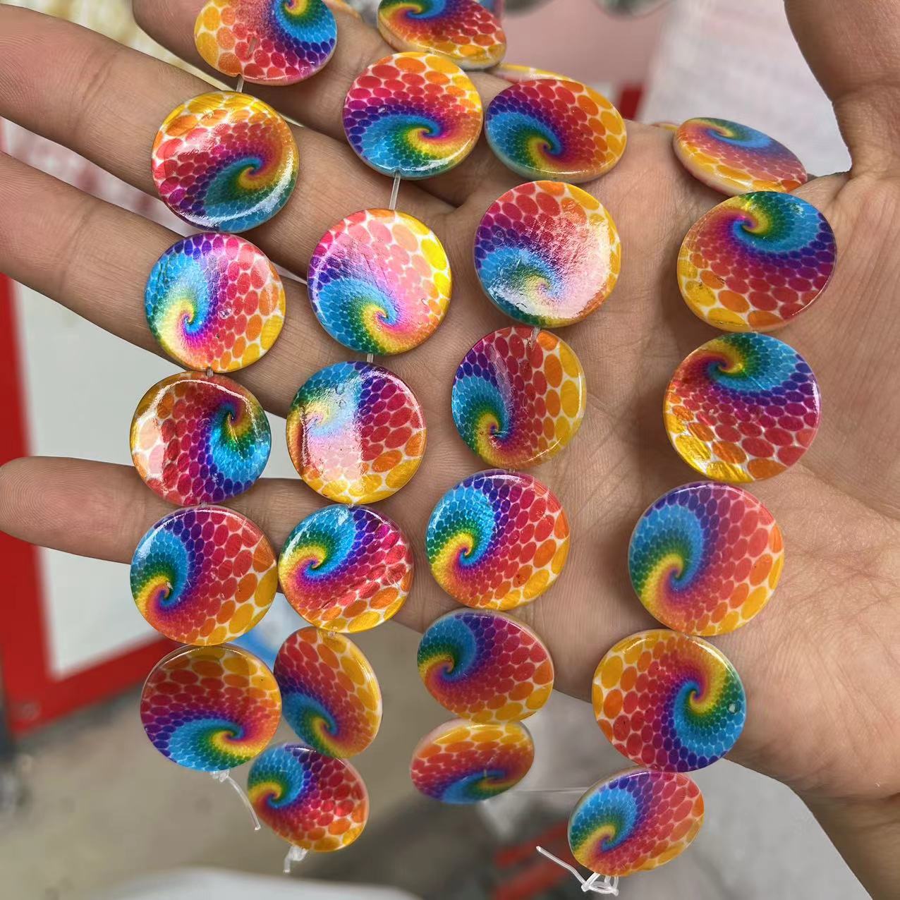 Бусины из ракушек натурального цвета, Пресноводные оболочка, принт, DIY, разноцветный, 20mm, 9ПК/Strand, продается Strand