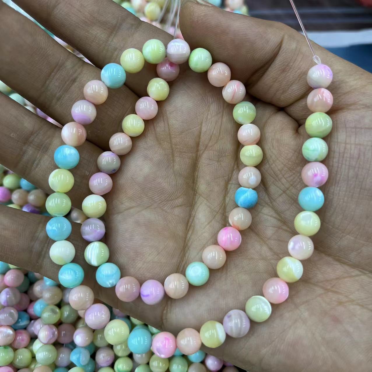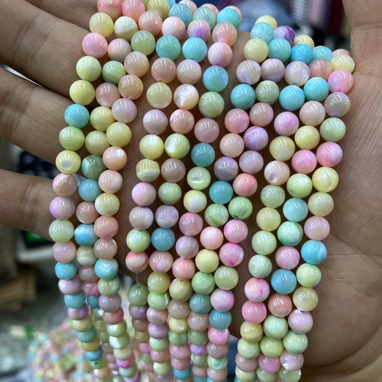 Бусины из ракушек натурального цвета, верхний кожух, Круглая, DIY, разноцветный, 7mm, Приблизительно 56ПК/Strand, продается Strand