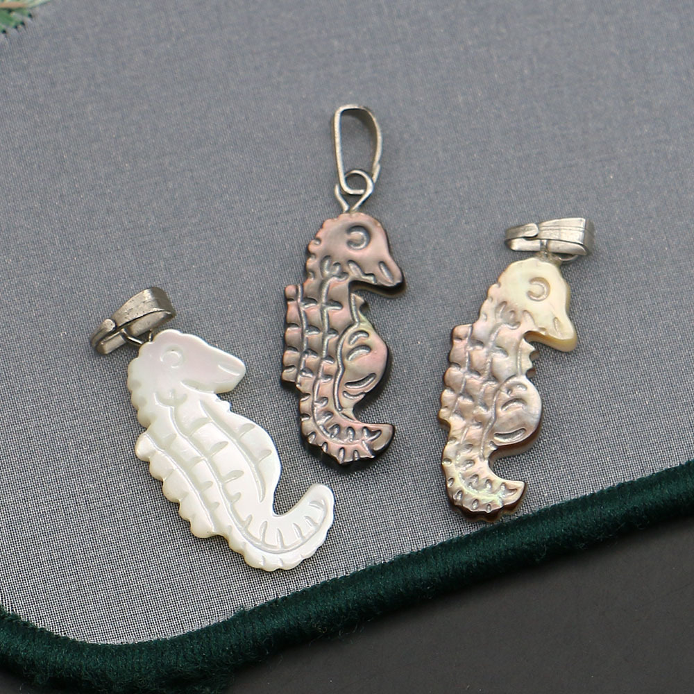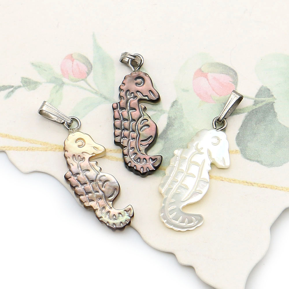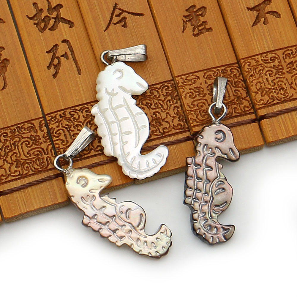Морская раковина подвеска, с Восковой шнур & Железо, Морской конек, DIY, Много цветов для выбора, 11x24mm, продается PC