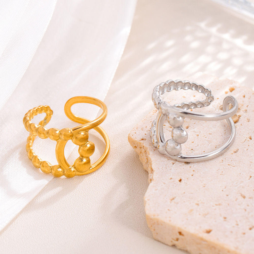 Палец кольцо из нержавеющей стали, Нержавеющая сталь 304, с Пластиковая жемчужина, Другое покрытие, ювелирные изделия моды & Женский, Золотой, продается PC