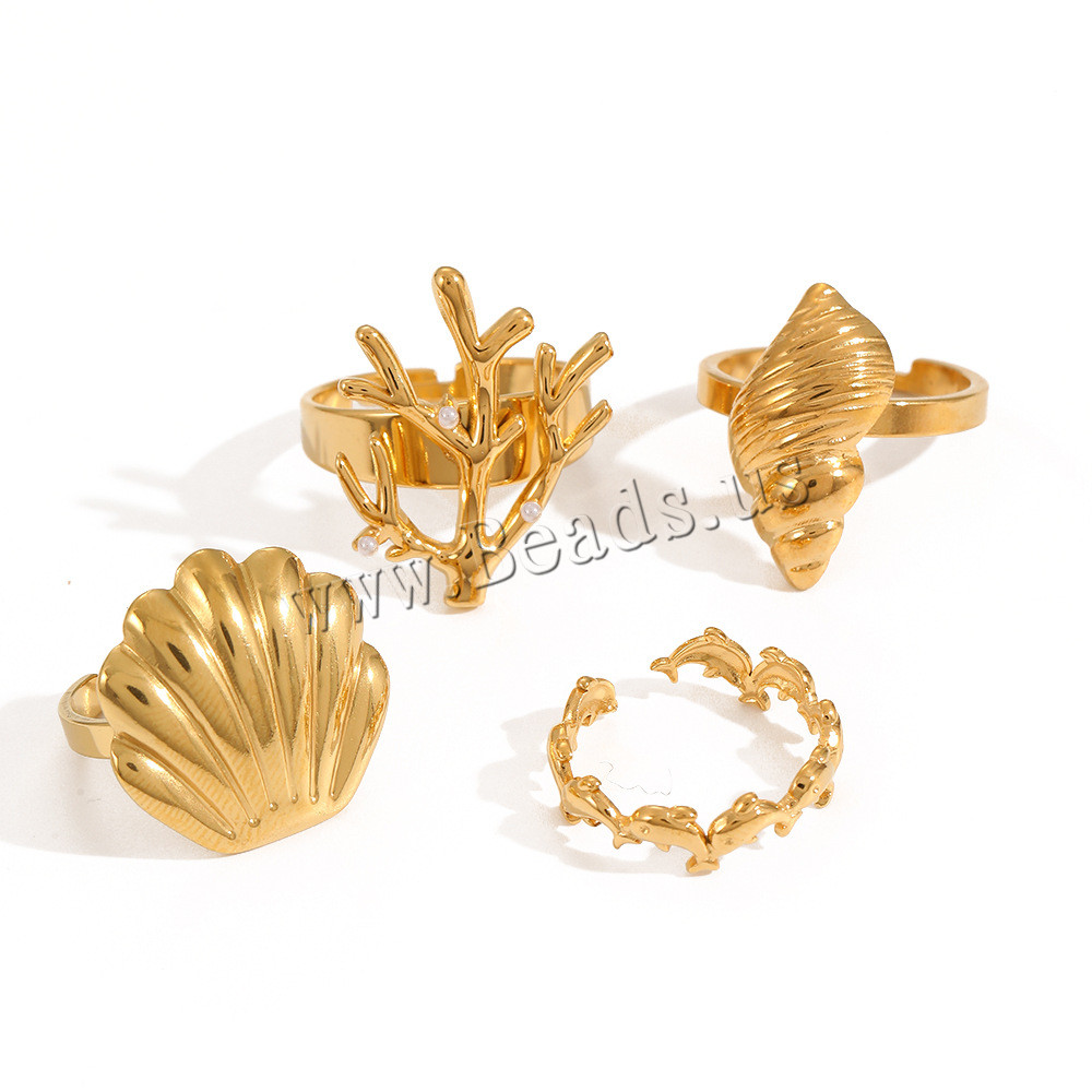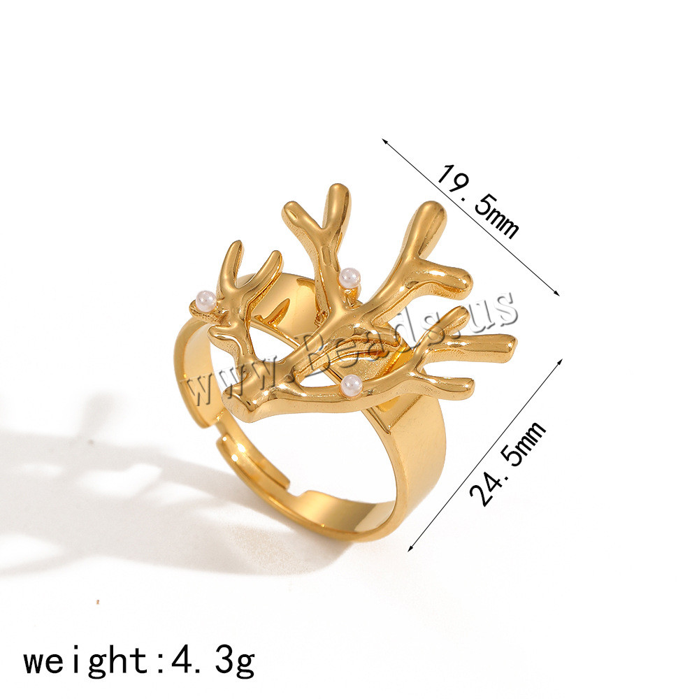 Палец кольцо из нержавеющей стали, Нержавеющая сталь 304, с Пластиковая жемчужина, Другое покрытие, ювелирные изделия моды & Женский, Золотой, продается PC