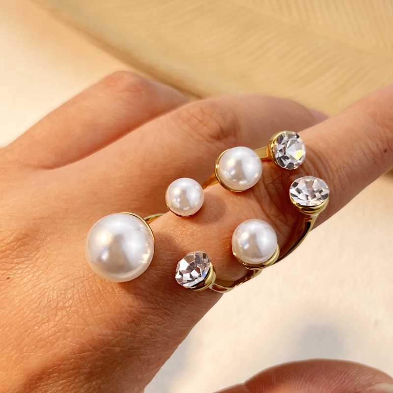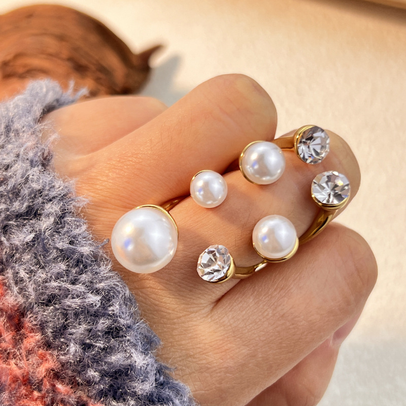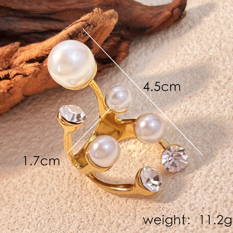 304 rostfritt stål Cuff finger ring, med Plast Pearl, guldfärg pläterade, för kvinna & med strass, Säljs av PC