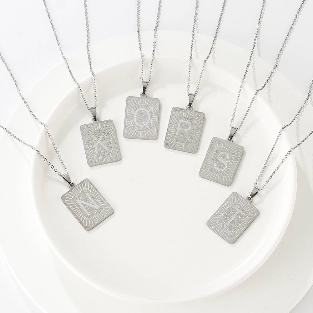 304 rostfritt stål Halsband, Rektangel, plated, Unisex & olika stilar för val & med bokstaven mönster, fler färger för val, Längd Ca 17.3 inch, Säljs av PC