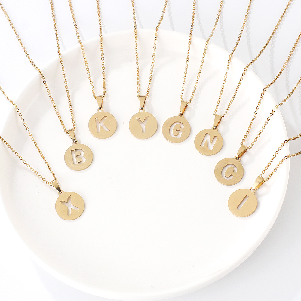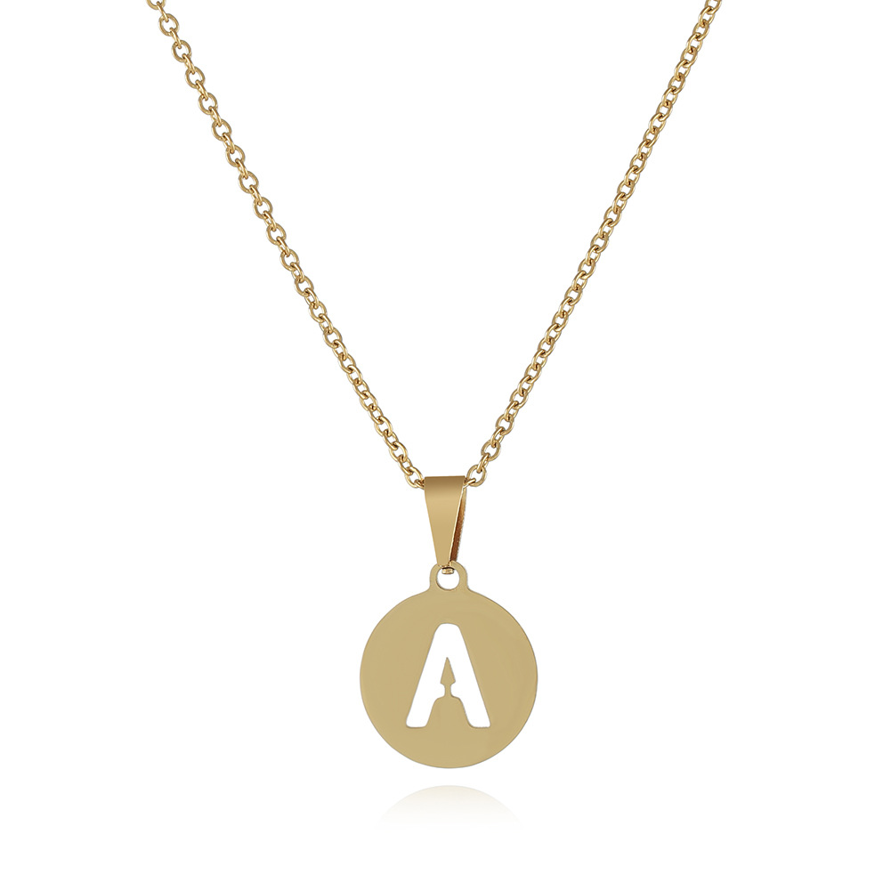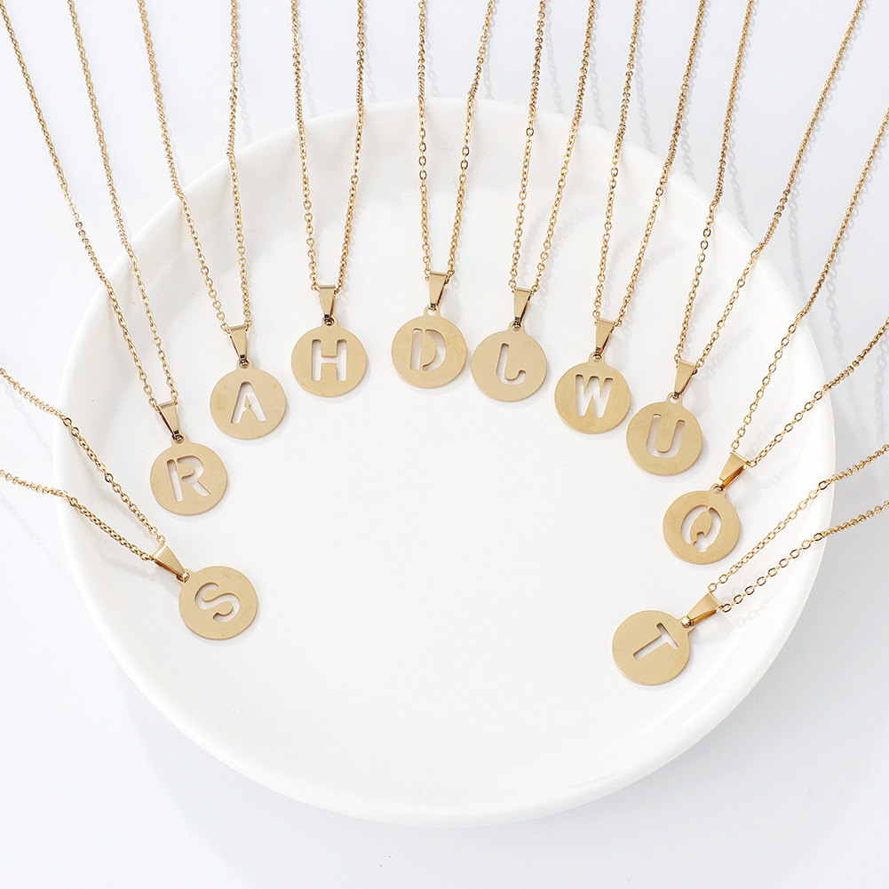 304 rostfritt stål Halsband, Alfabetsbokstav, guldfärg pläterade, Unisex & olika stilar för val & ihålig, Längd Ca 17.3 inch, Säljs av PC
