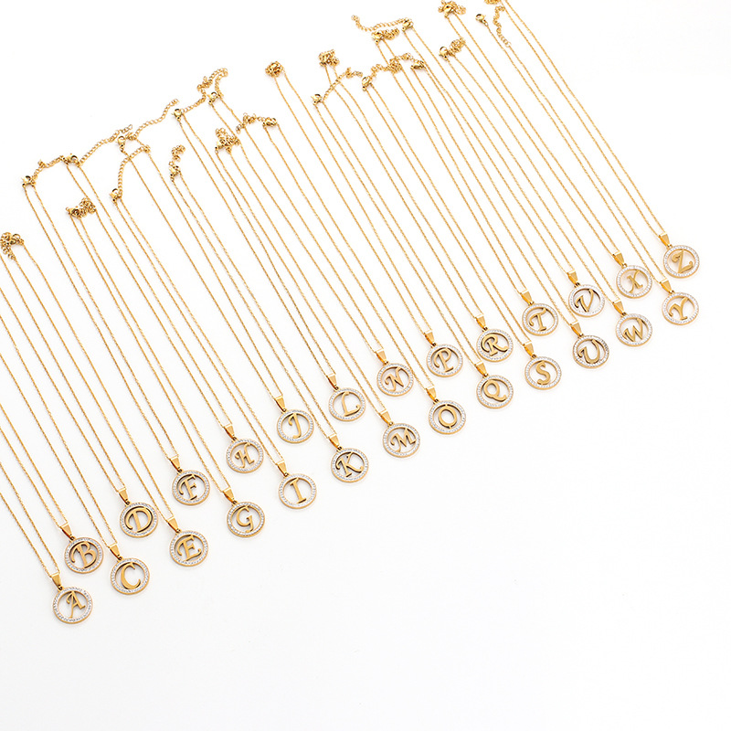 304 rostfritt stål Halsband, Alfabetsbokstav, plated, Unisex & oval kedja & olika stilar för val & med strass, fler färger för val, Längd Ca 17.3 inch, Säljs av PC