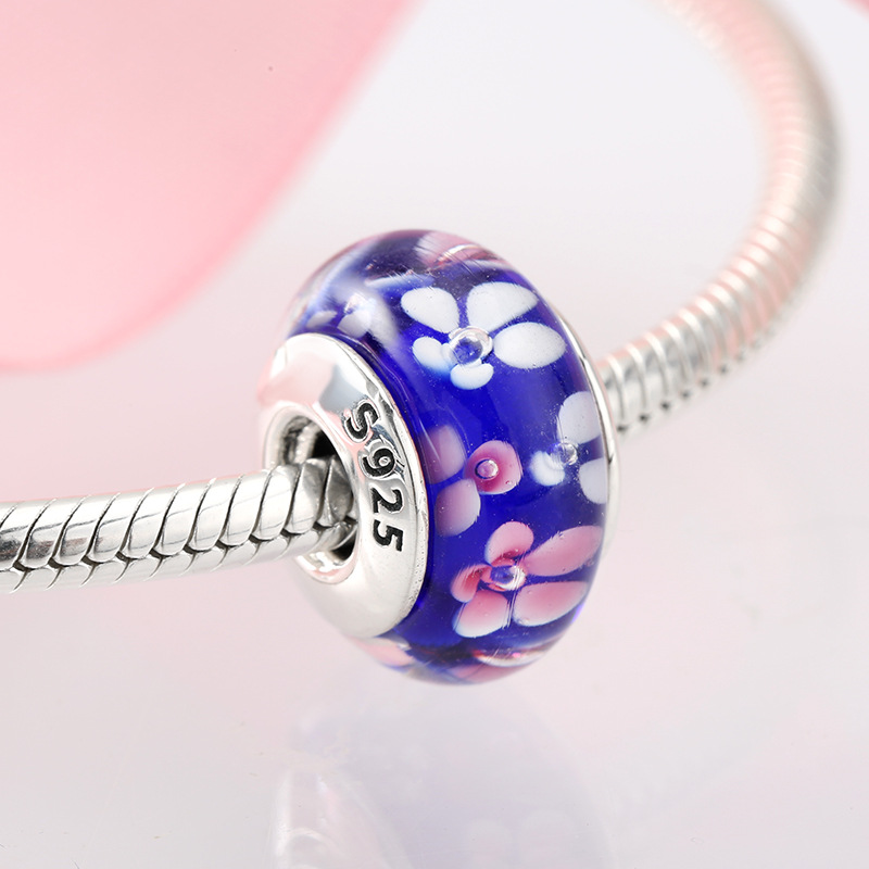 925 Sterling Silver European Pärlor, med Lampwork, DIY, fler färger för val, 10mm, Säljs av PC