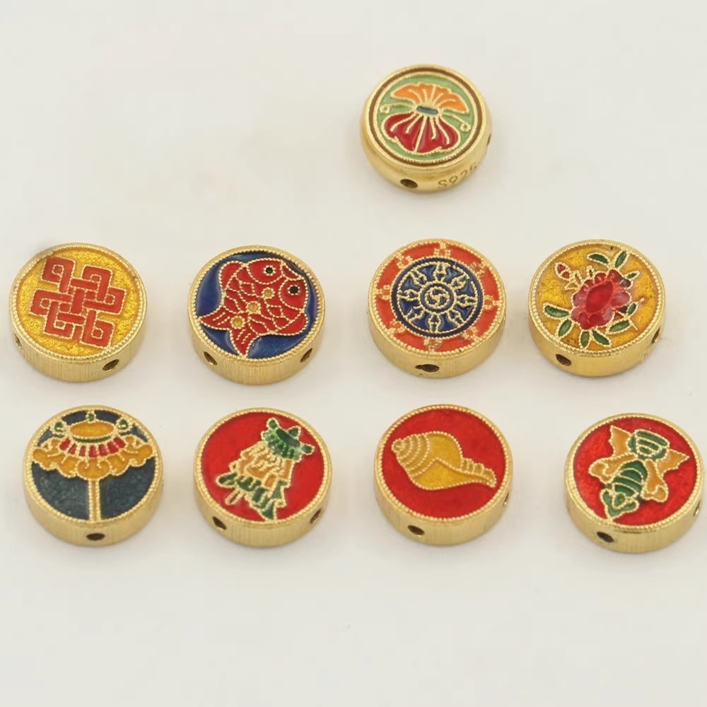 925 Sterling Silver Pärlor, Flat Round, guldfärg pläterade, DIY & olika mönster för val & emalj, Säljs av PC
