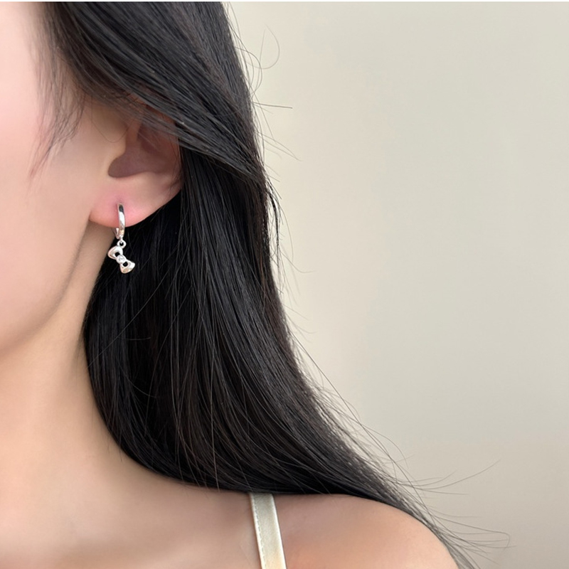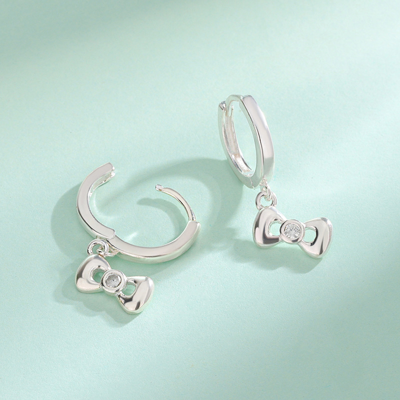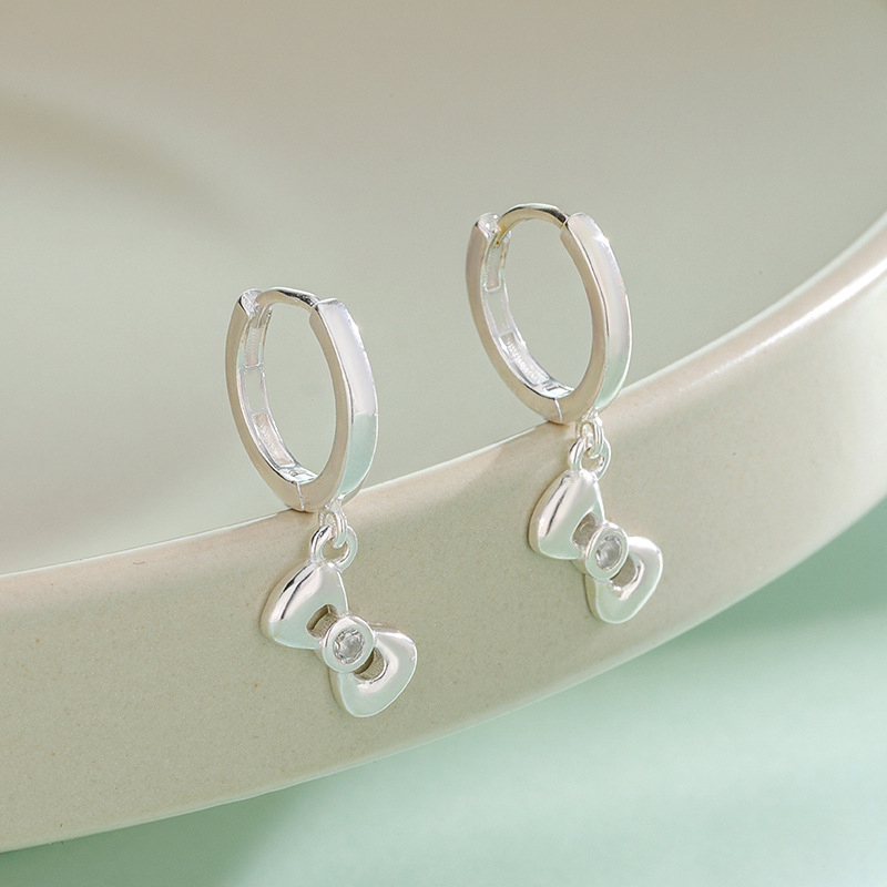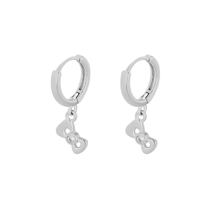 925 sterling silver Huggie Hoop Droppörhänge, Bowknot, micro bana cubic zirconia & för kvinna, silver, 10x20mm, Säljs av Par