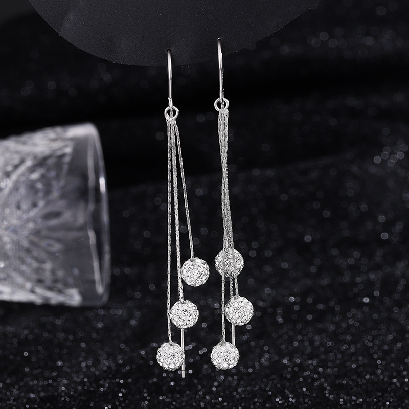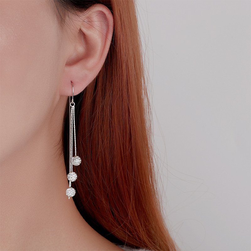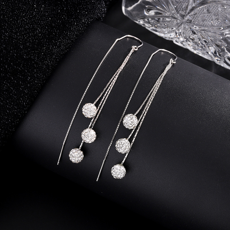 925 sterling silver Tråd genom Örhängen, Rund, platinerade, för kvinna & med strass, 70mm, Säljs av Par