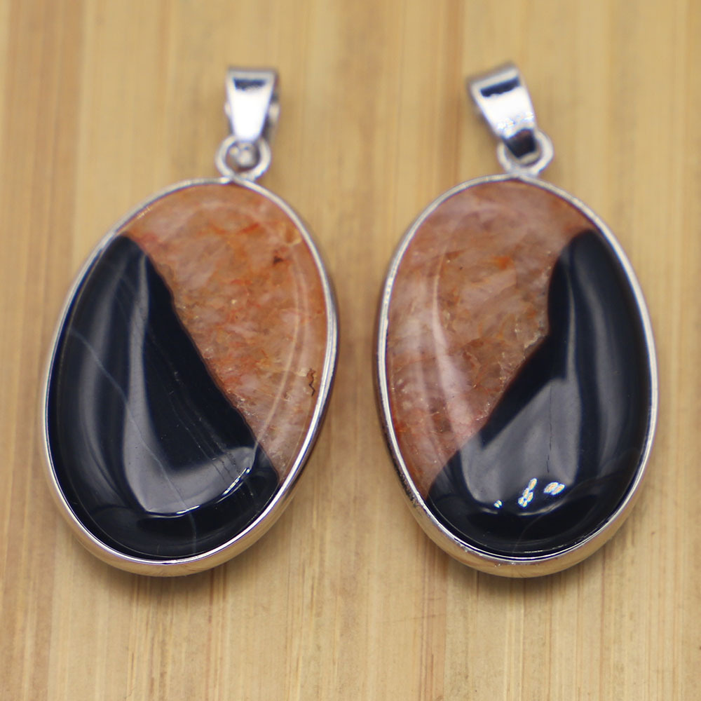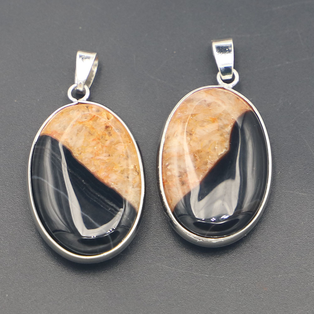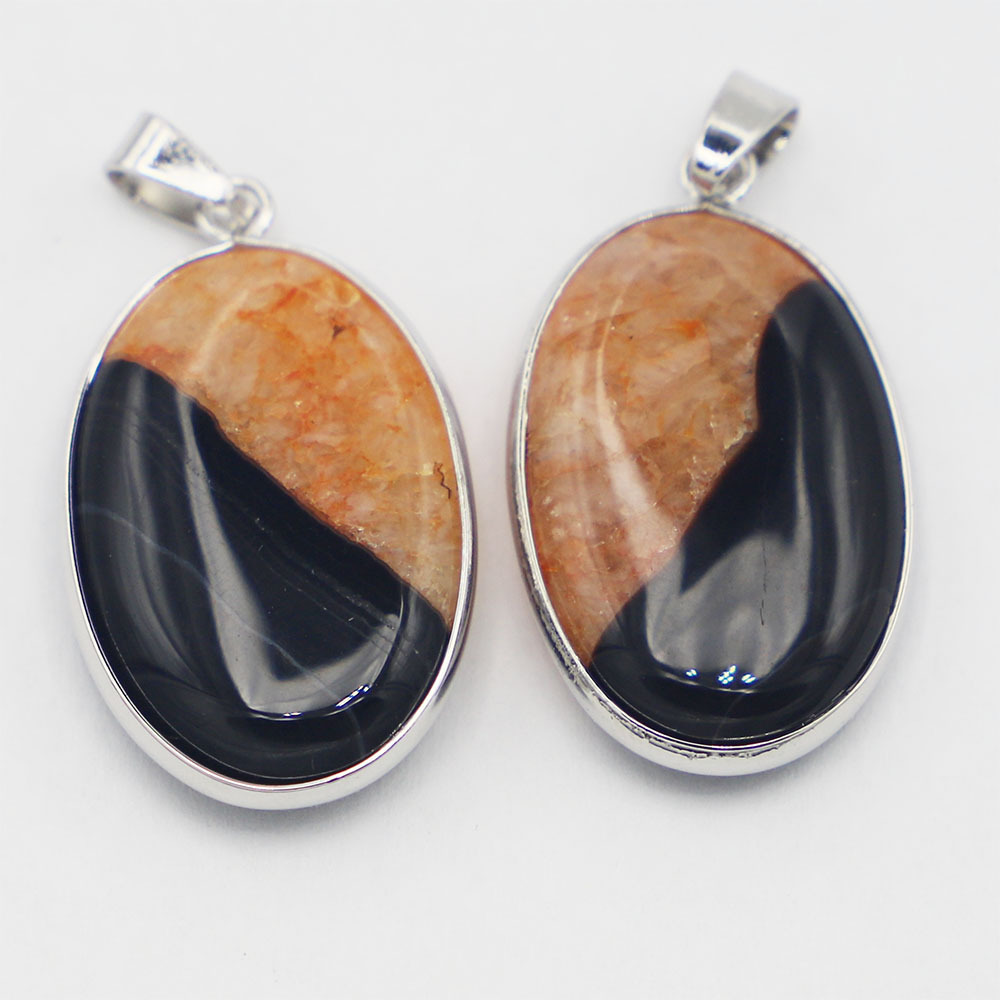 Agat Hänge, ellips, DIY, blandade färger, 31x21x7mm, Säljs av PC