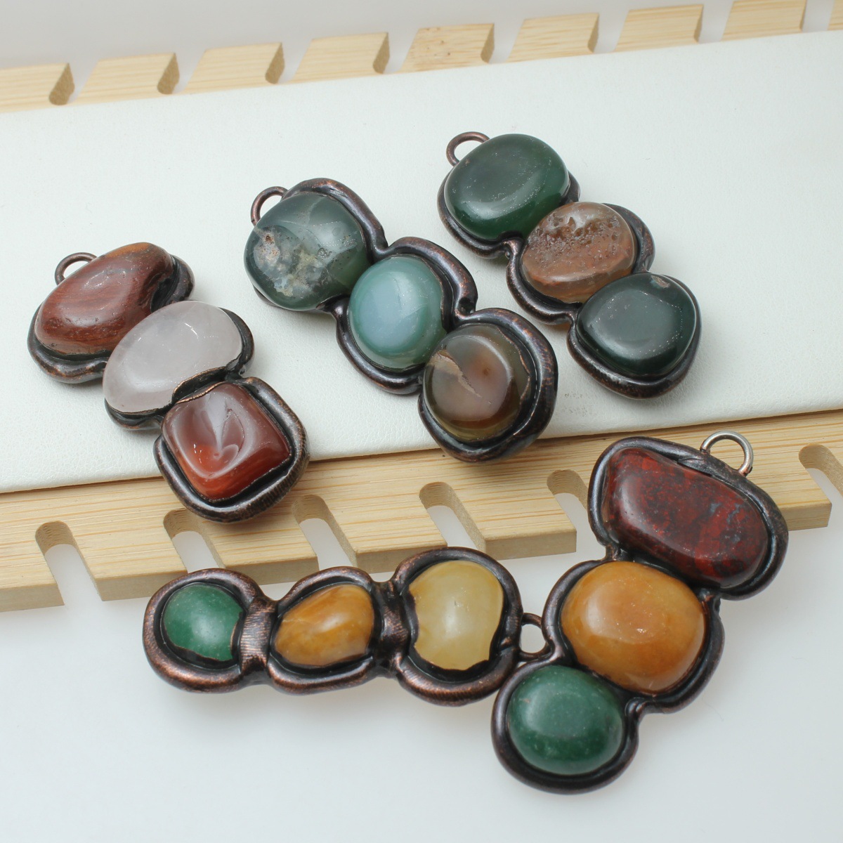 Agat smycken Häng, med Zink Alloy, slumpmässigt skickade & DIY, flerfärgad, 20x50mm, Säljs av PC