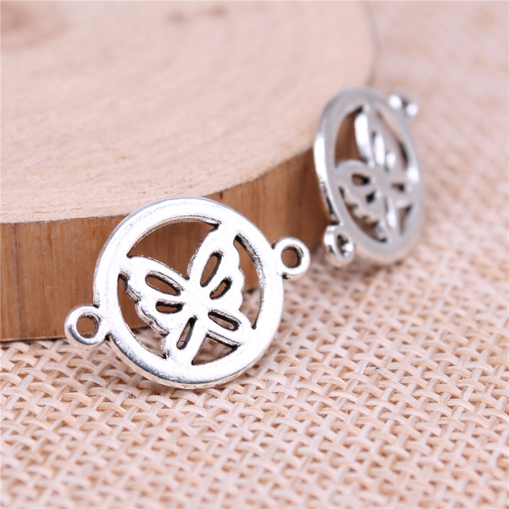 Anslutning till animalisk zinklegering, Zink Alloy, Fjäril, antik silver pläterad, DIY & ihålig, 20x14mm, 20PC/Bag, Säljs av Bag