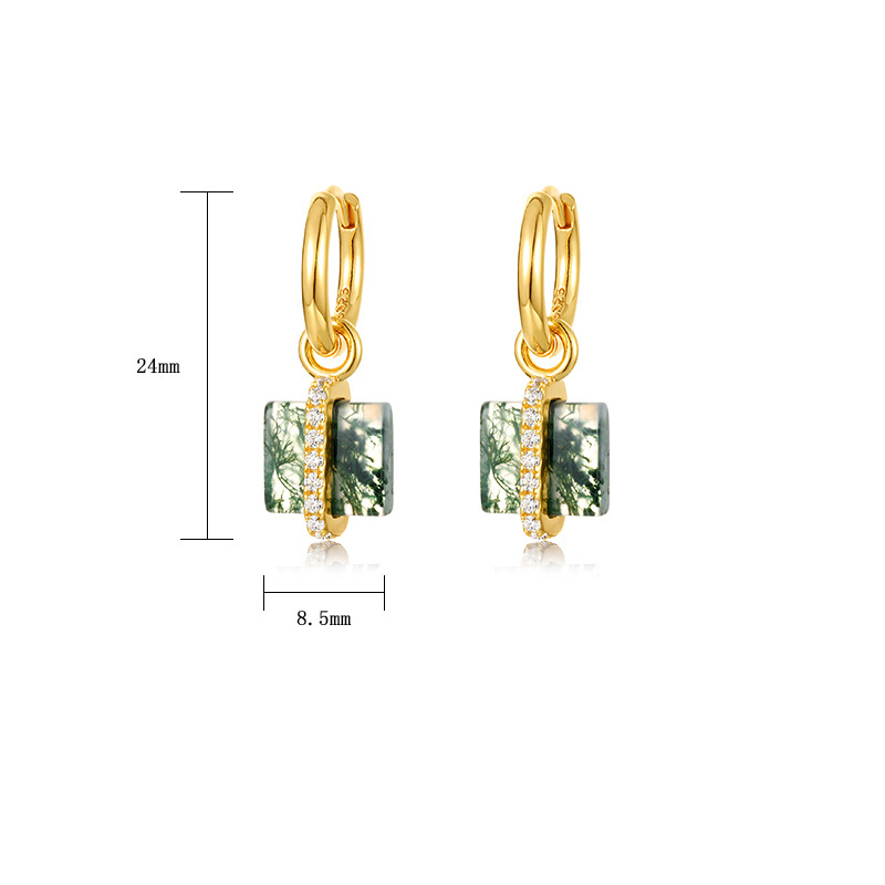 925 sterling silver Huggie Hoop Droppörhänge, med Moss Agate, Geometriskt mönster, guldfärg pläterade, för kvinna & med strass, 8.50x24mm, Säljs av Par