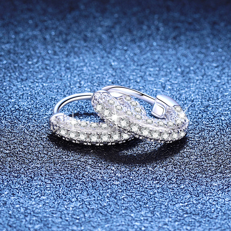 925 sterling silver Huggie Hoop Earring, med Moissanite (på), platinerade, mode smycken & för kvinna, 14x14mm, Säljs av Par