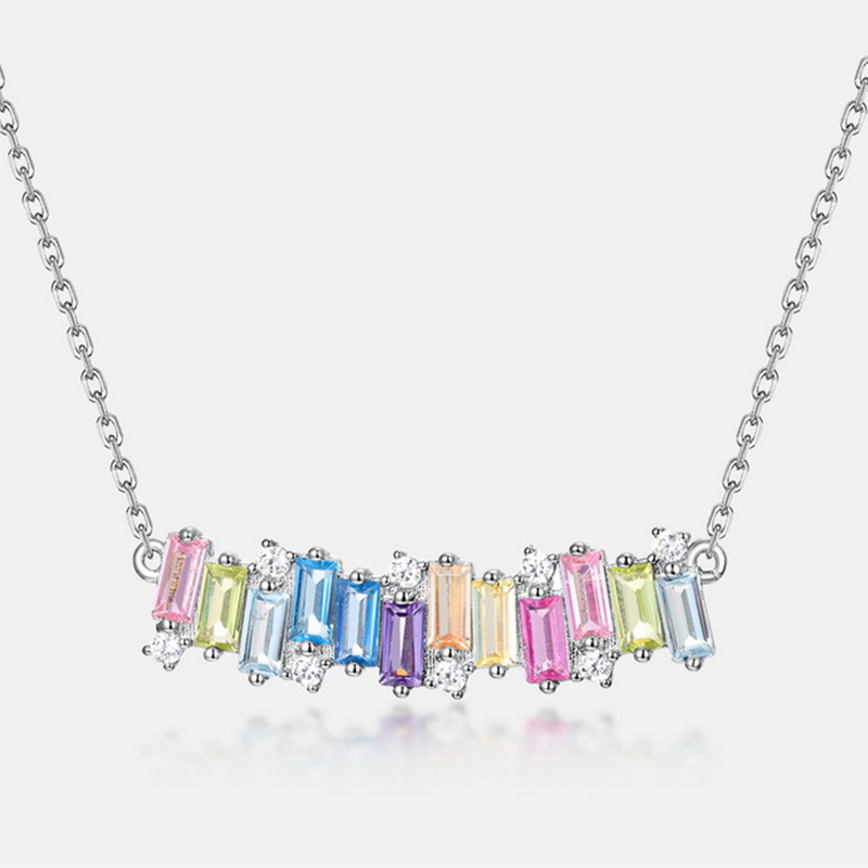 925 sterling silver Halsband, med 2inch extender kedja, Geometriskt mönster, platinerade, micro bana cubic zirconia & för kvinna, Längd Ca 15.7 inch, Säljs av PC