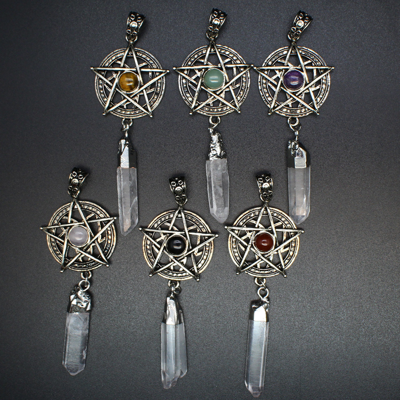 Gemstone Hängen Smycken, Mässing, med Natursten, Star, plated, DIY & olika material för val, fler färger för val, nickel, bly och kadmium gratis, Säljs av PC