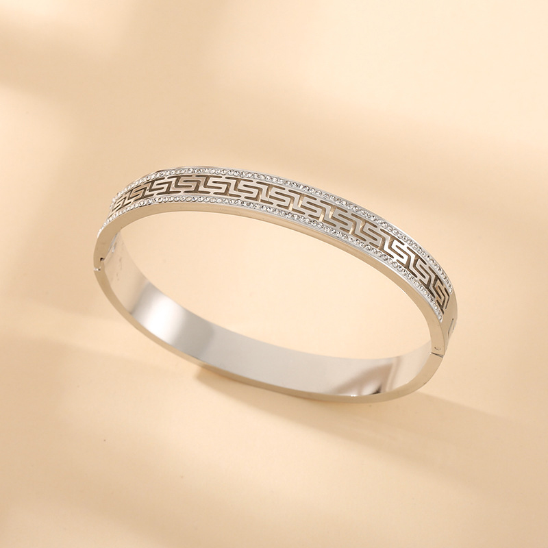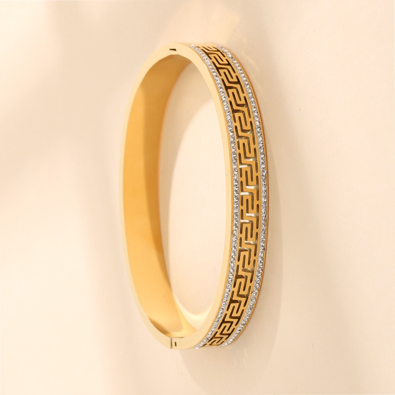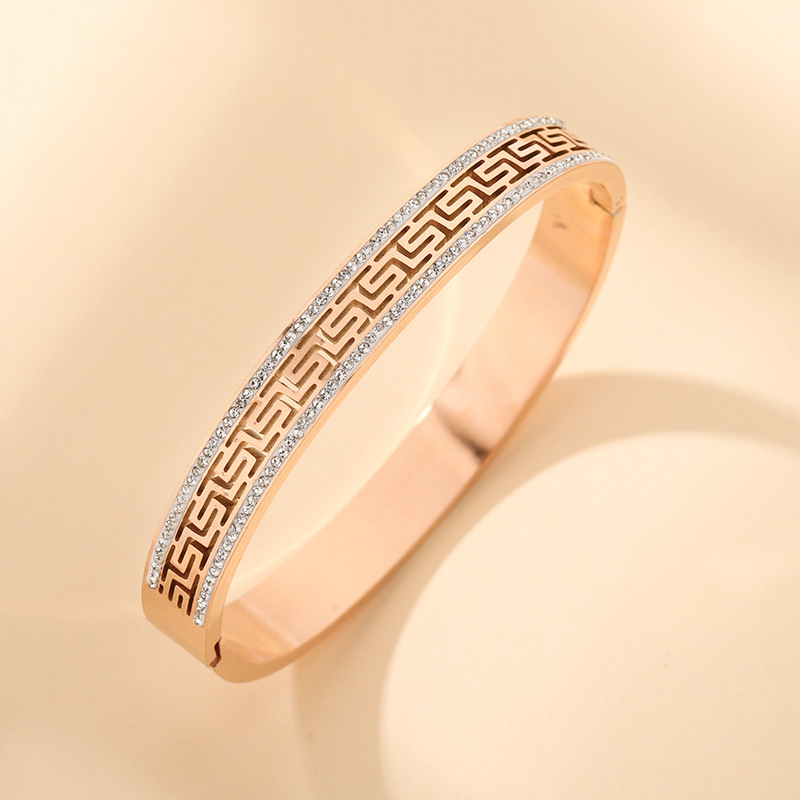 Rostfritt stål Armring, 304 rostfritt stål, plated, för kvinna & med strass & ihålig, fler färger för val, Inner diameter: about 17cm., Säljs av PC